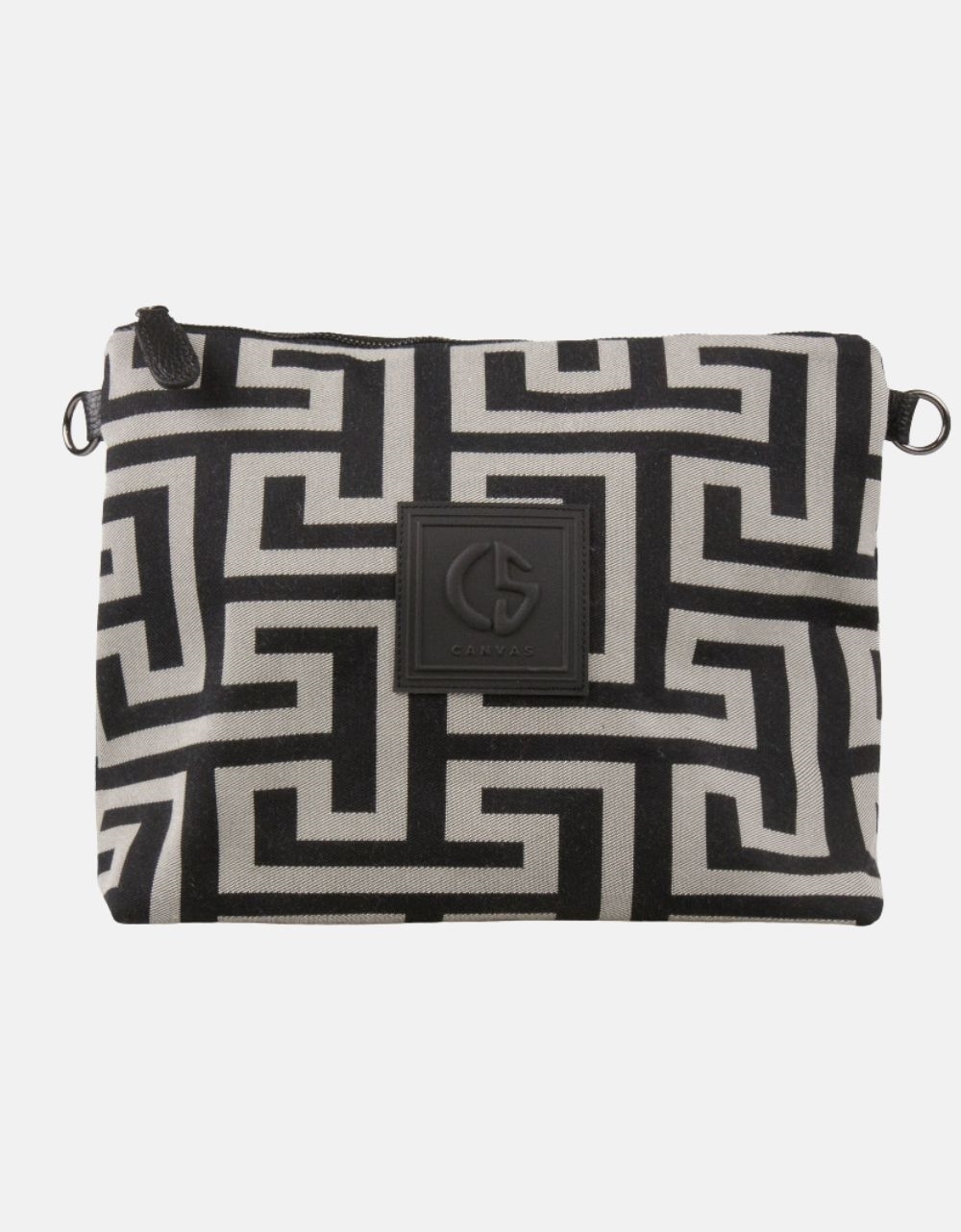 Μονόχρωμη τσάντα φάκελος κατασκευασμένη από άριστης ποιότητας. Κλείνει με φερμουάρ και διαθέτει λουράκι καρπού και προσαρμοζόμενο λουρί ώμου.