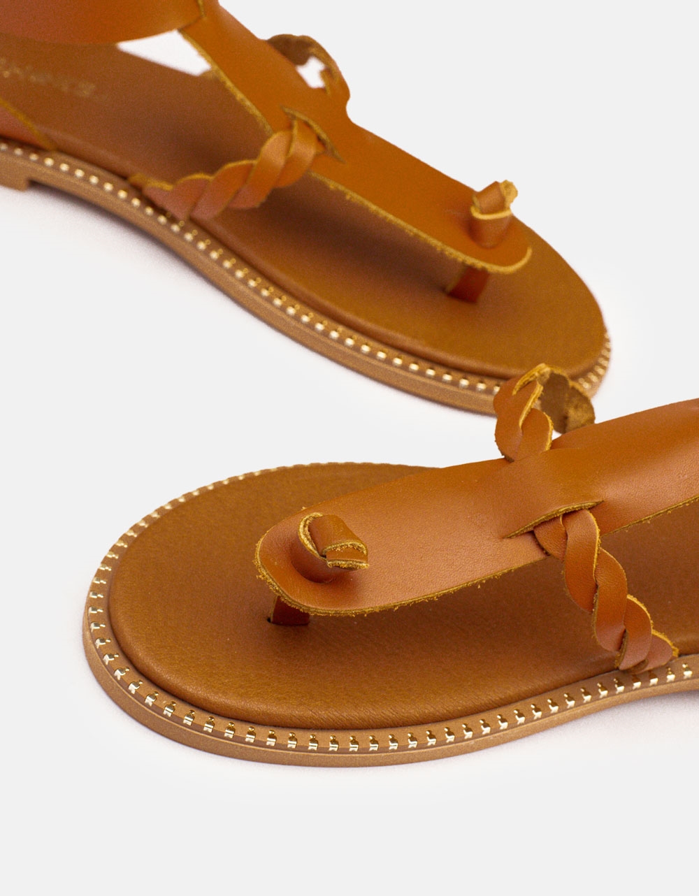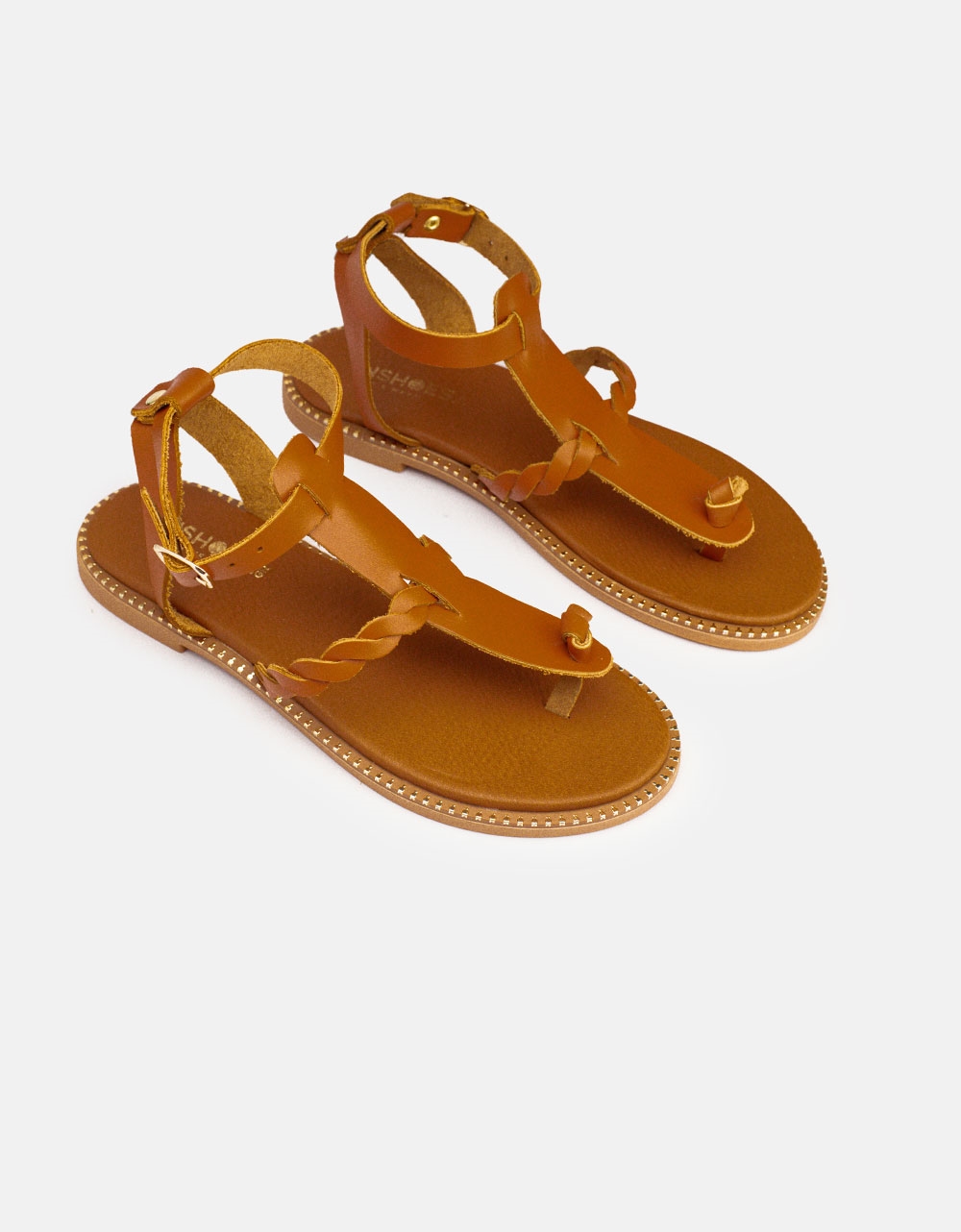 Φλατ σανδάλια από γνήσιο δέρμα με κοτσιδάκια. Έχουν μαλακό πάτο επίσης από γνήσιο δέρμα. Δένουν με μπαρέτα στο ύψος του αστραγάλου.
