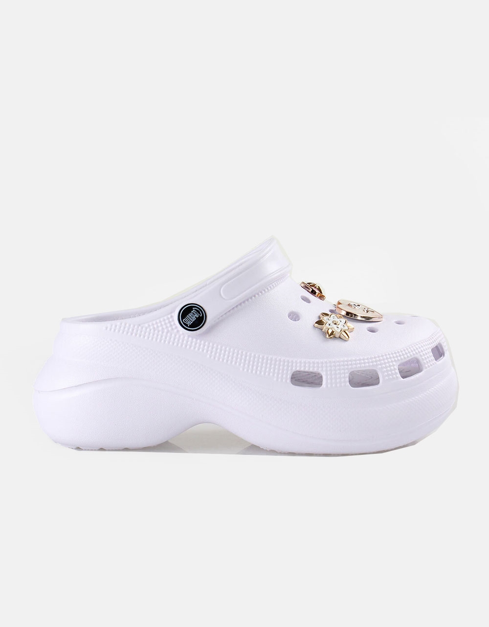 Γυναικεία σαμπό με μεταλλικά διακοσμητικά στοιχεία Λευκό