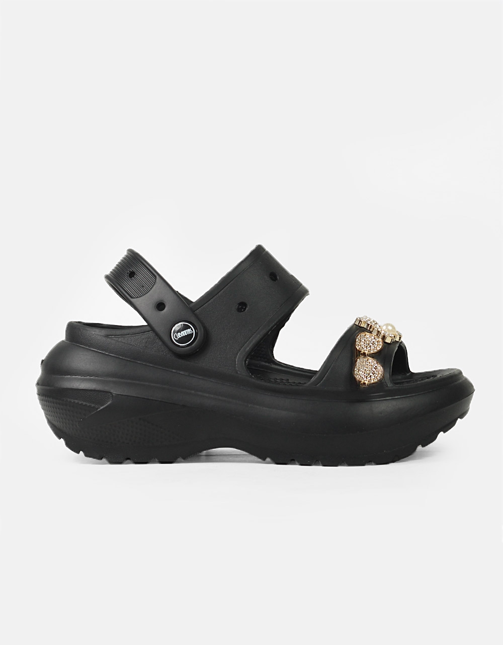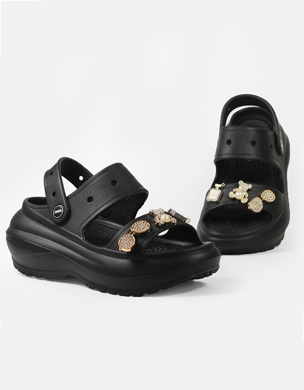 Γυναικεία σαμπό με διπλή φάσα και διακοσμητικά Μαύρο