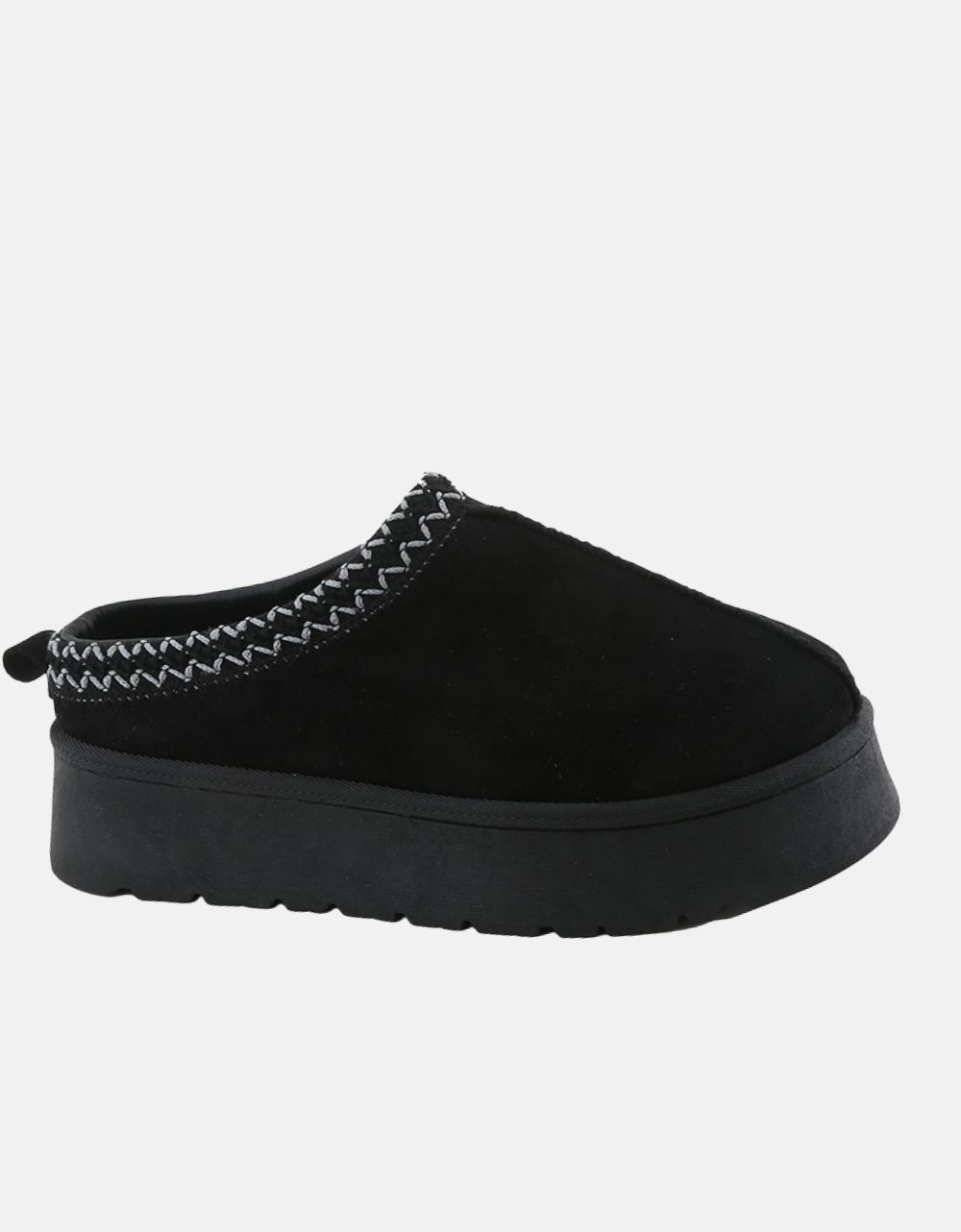 Suede clogs με διπλή σόλα και γούνινη επένδυση Μαύρο