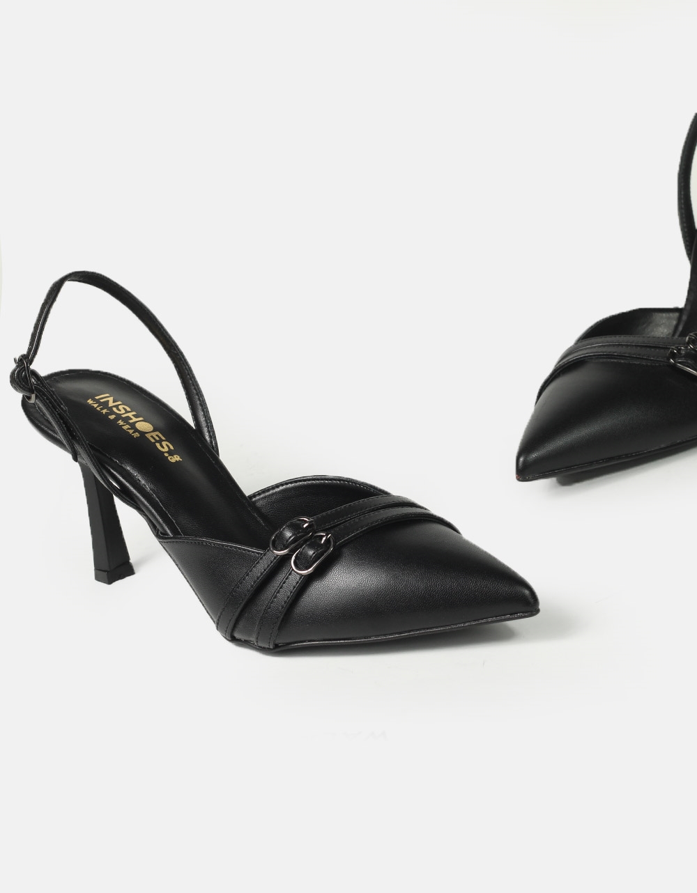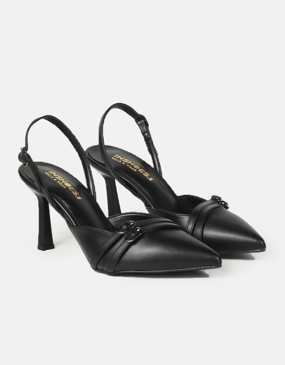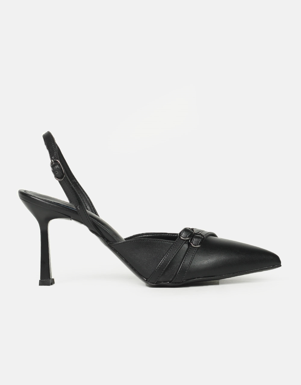 Γόβες singback Ελληνικής κατασκευής με διπλή μπαρέτα Μαύρο