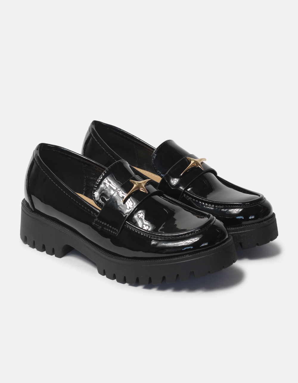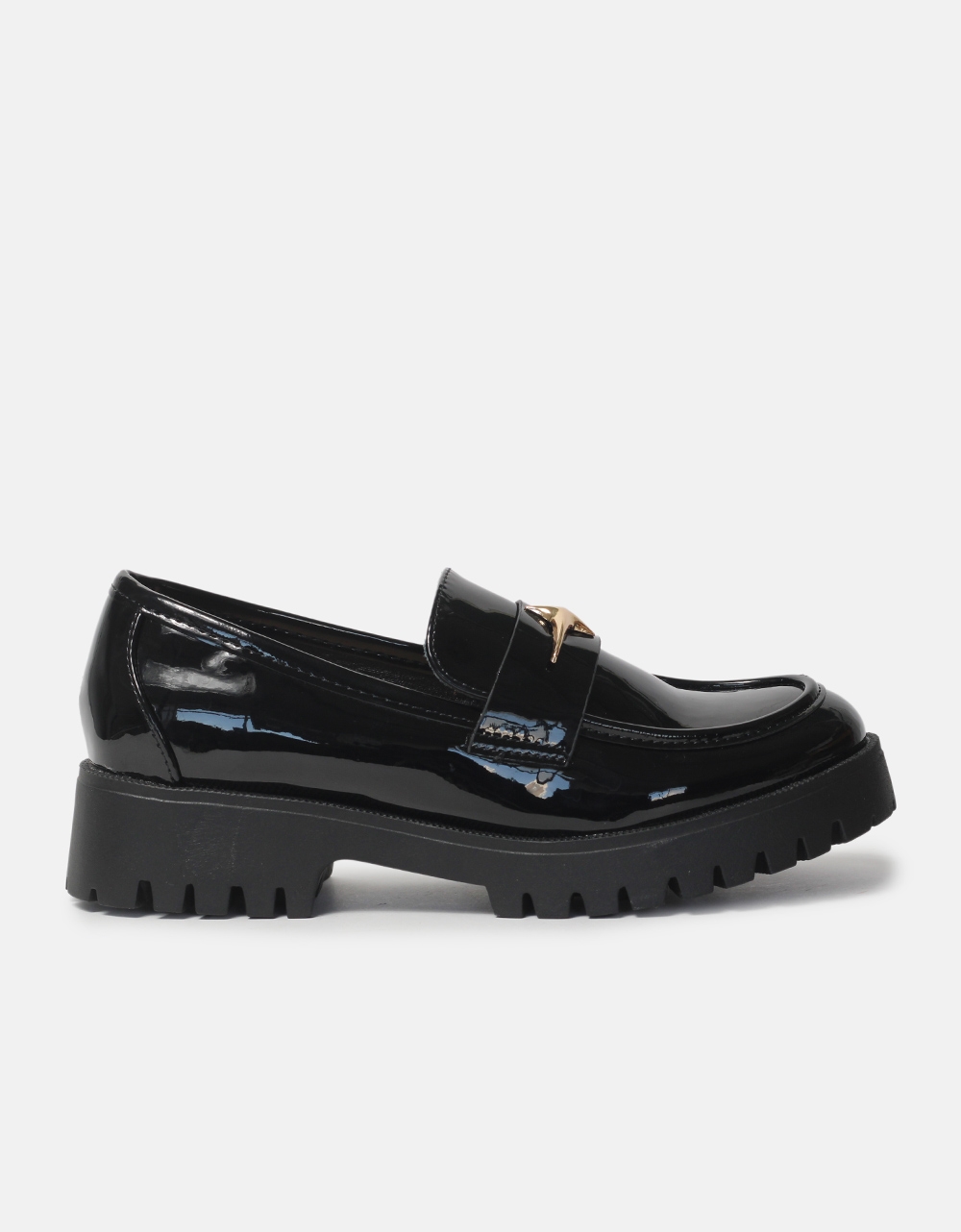 Βasic loafers με μεταλλική λεπτομέρεια. Διαθέτουν τρακτερωτή ελαστική σόλα και είναι κατασκευασμένα από άριστης ποιότητας λουστρίνι.