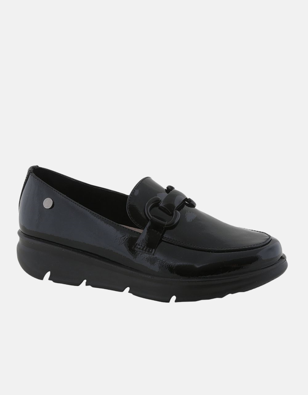 Γυναικεία loafers λουστρίνι με αγκράφα. Διαθέτουν ελαστική- αντιολισθητική σόλα για άνετο βάδισμα καθόλη τη διάρκεια της ημέρας.