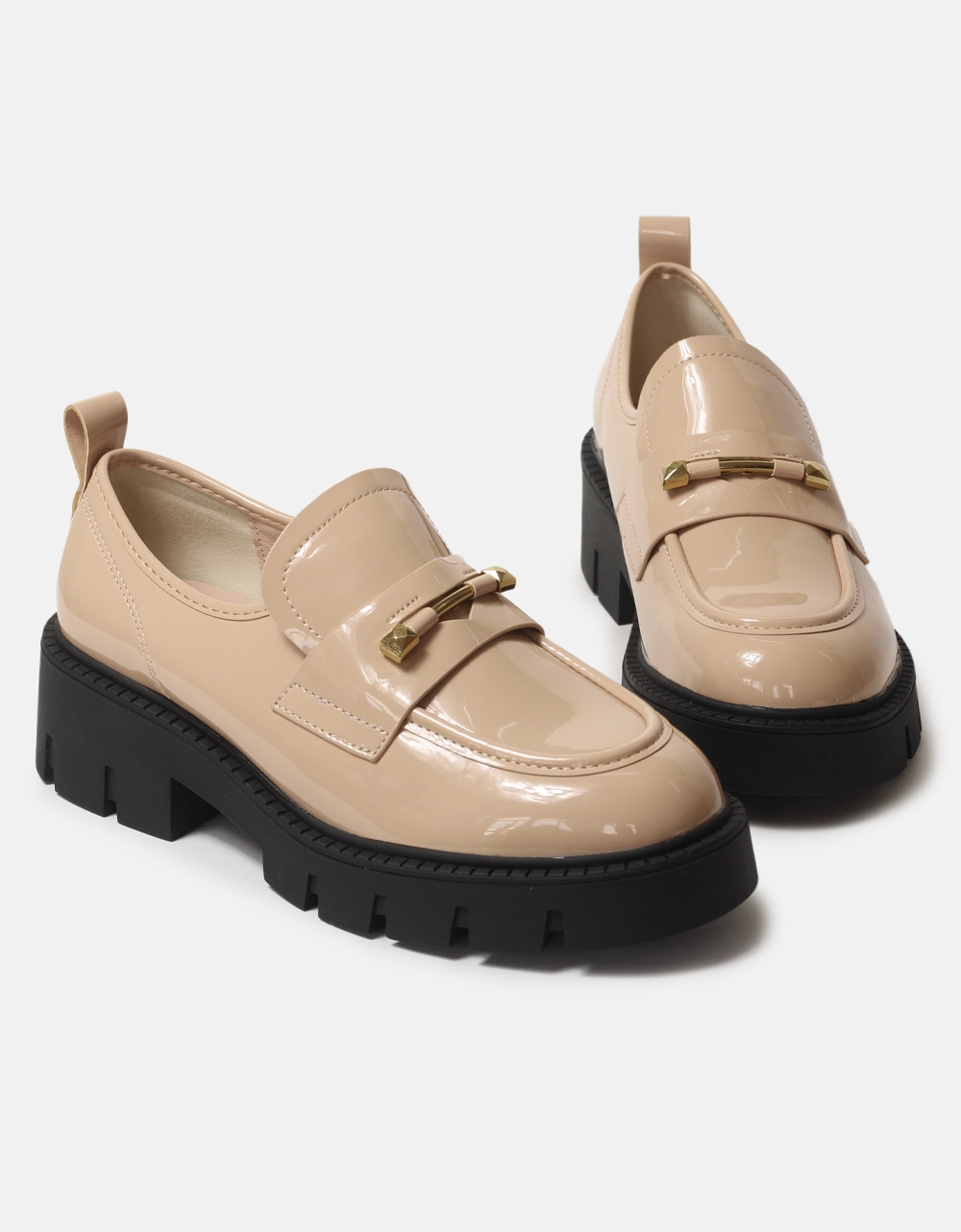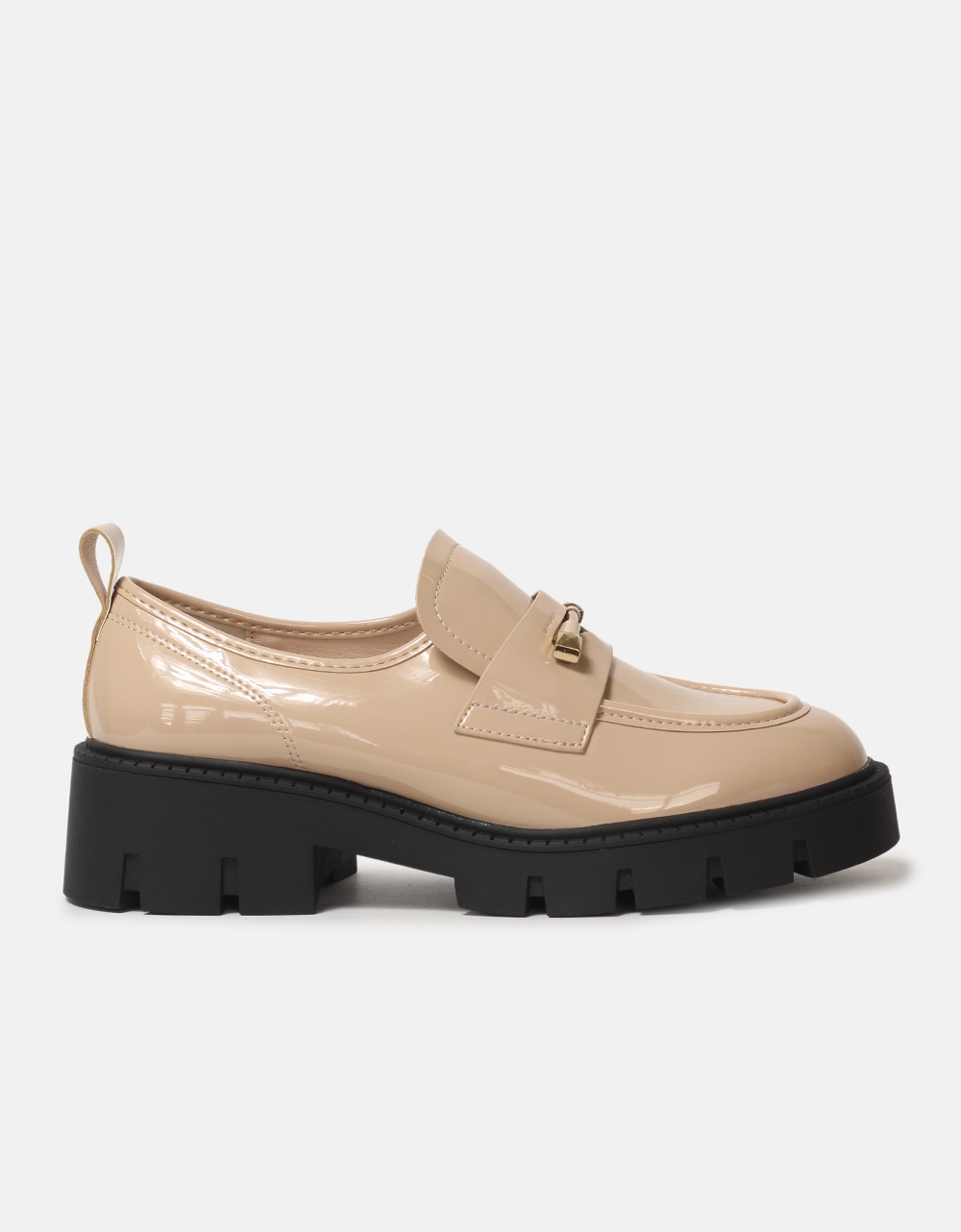 Loafers λουστρίνι με μεταλλική λεπτομέρεια Μπεζ