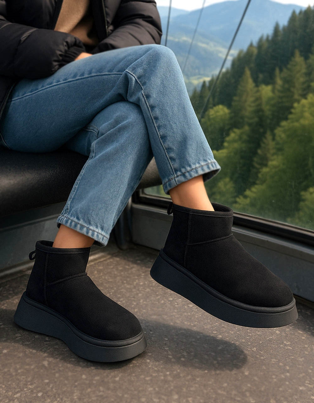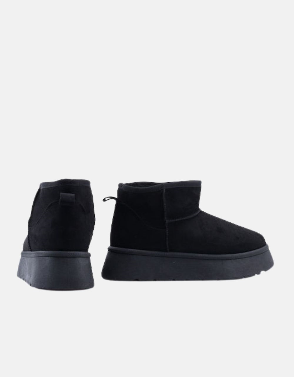 Δίσολα suede μονόχρωμα μποτάκια αστραγάλου . Διαθέτουν εσωτερικά επένδυση από συνθετικό γουνάκι και διπλή αντιολισθητική σόλα για άνετο βάδισμα.