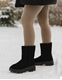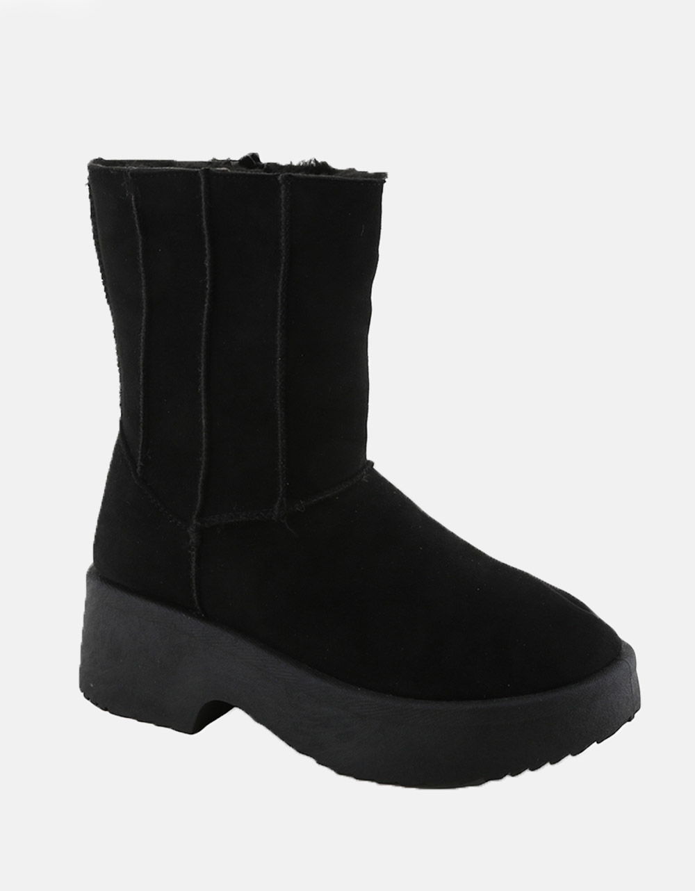 Δίσολα suede μποτάκια με χαμηλό τακούνι. Διαθέτουν εσωτερικά επένδυση από συνθετικό γουνάκι και διπλή αντιολισθητική σόλα για άνετο βάδισμα.