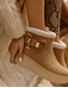 Suede μποτάκια μονόχρωμα με διακοσμητικό. Διαθέτουν εσωτερικά επένδυση από συνθετικό γουνάκι και διπλή αντιολισθητική σόλα για άνετο βάδισμα.