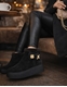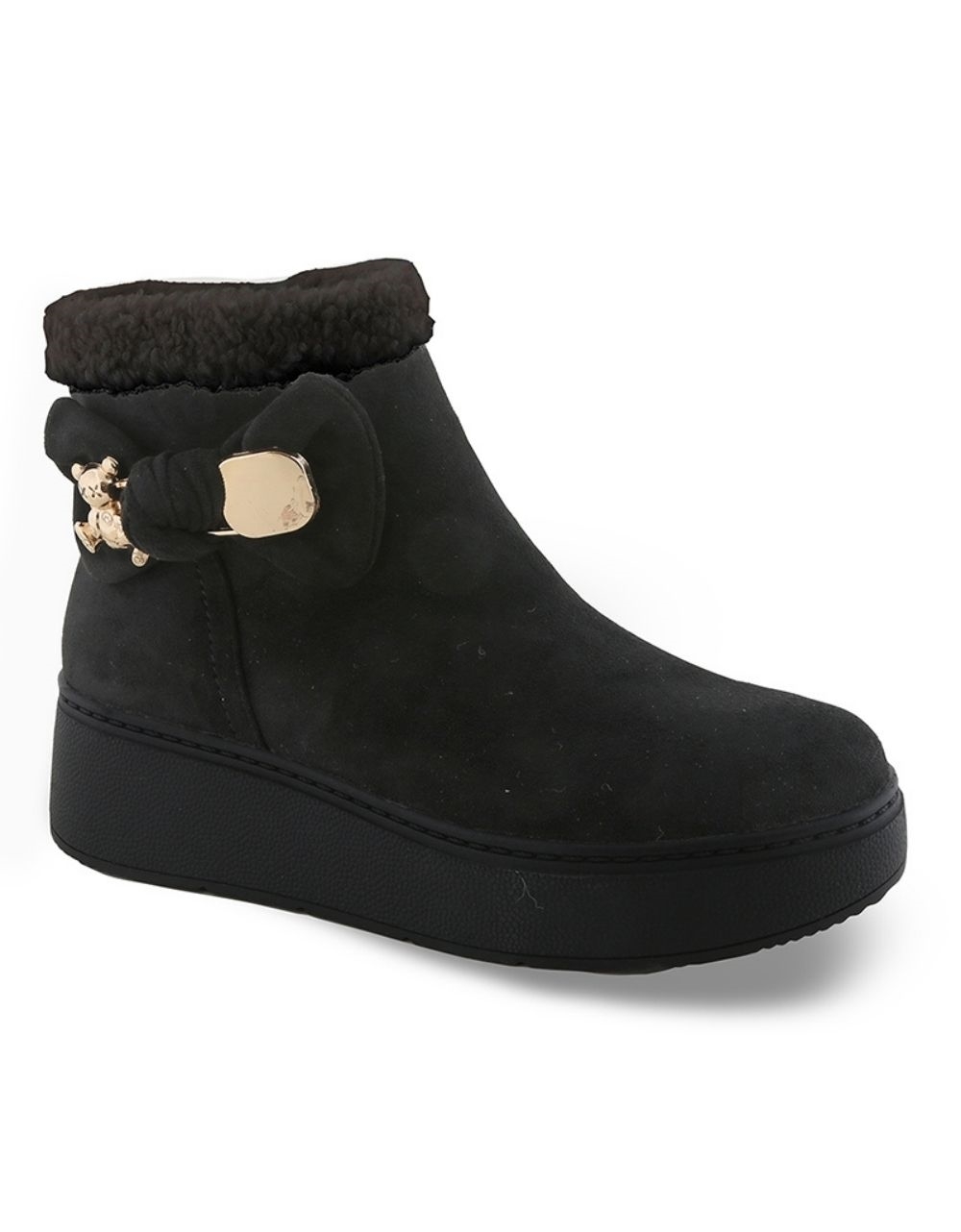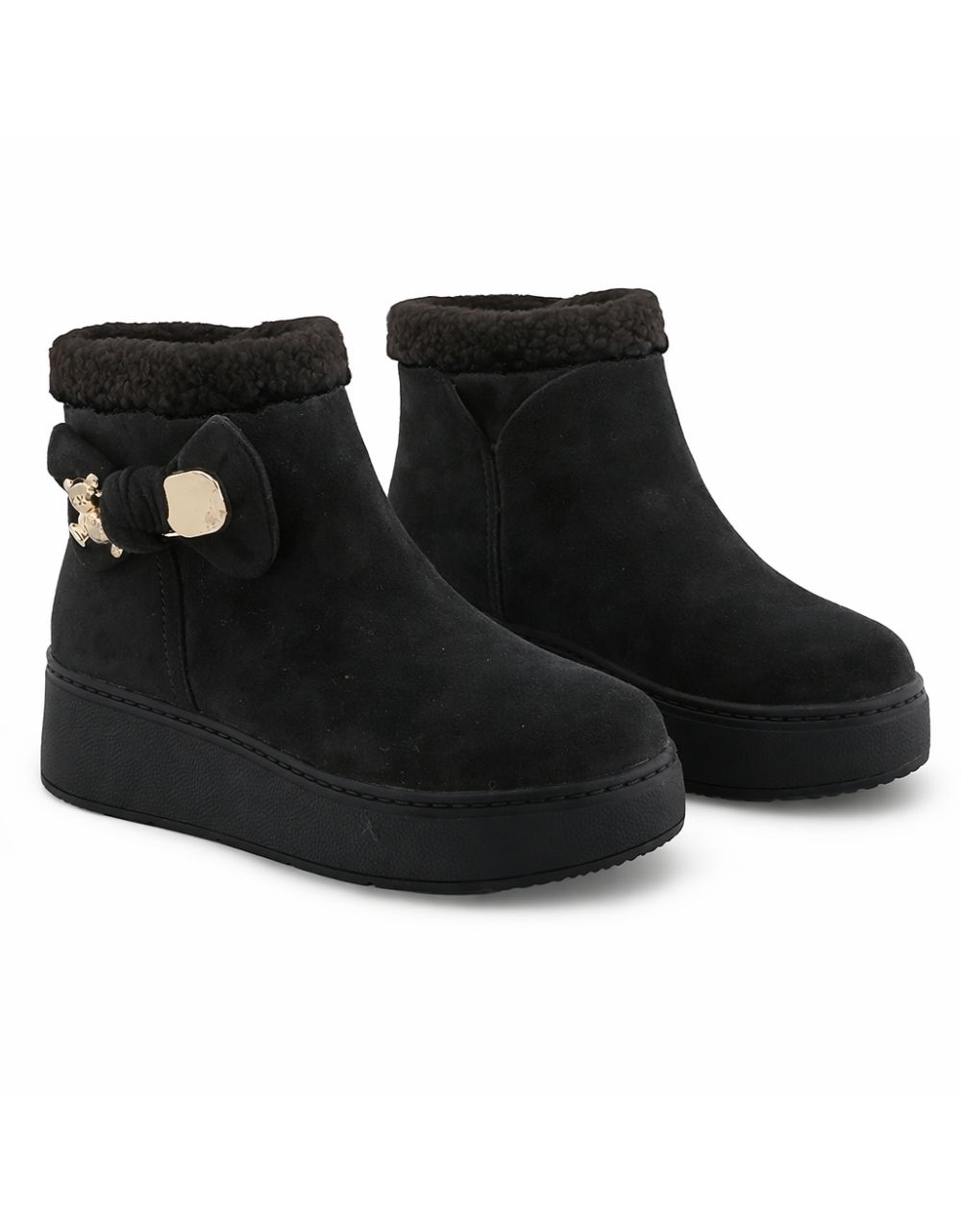 Δίσολα suede μποτάκια μονόχρωμα με διακοσμητικό Μαύρο