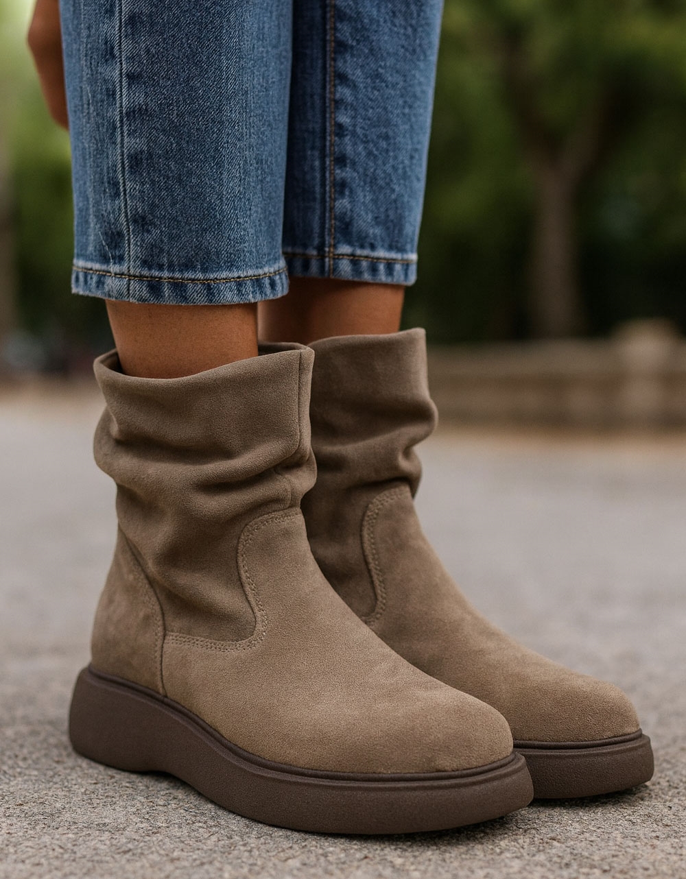 Γυναικεία μποτάκια flat με διακριτική αγκράφα. Διαθέτουν ελαστική και αντιολισθητική σόλα για άνετο βάδισμα καθόλη τη διάρκεια της ημέρας.