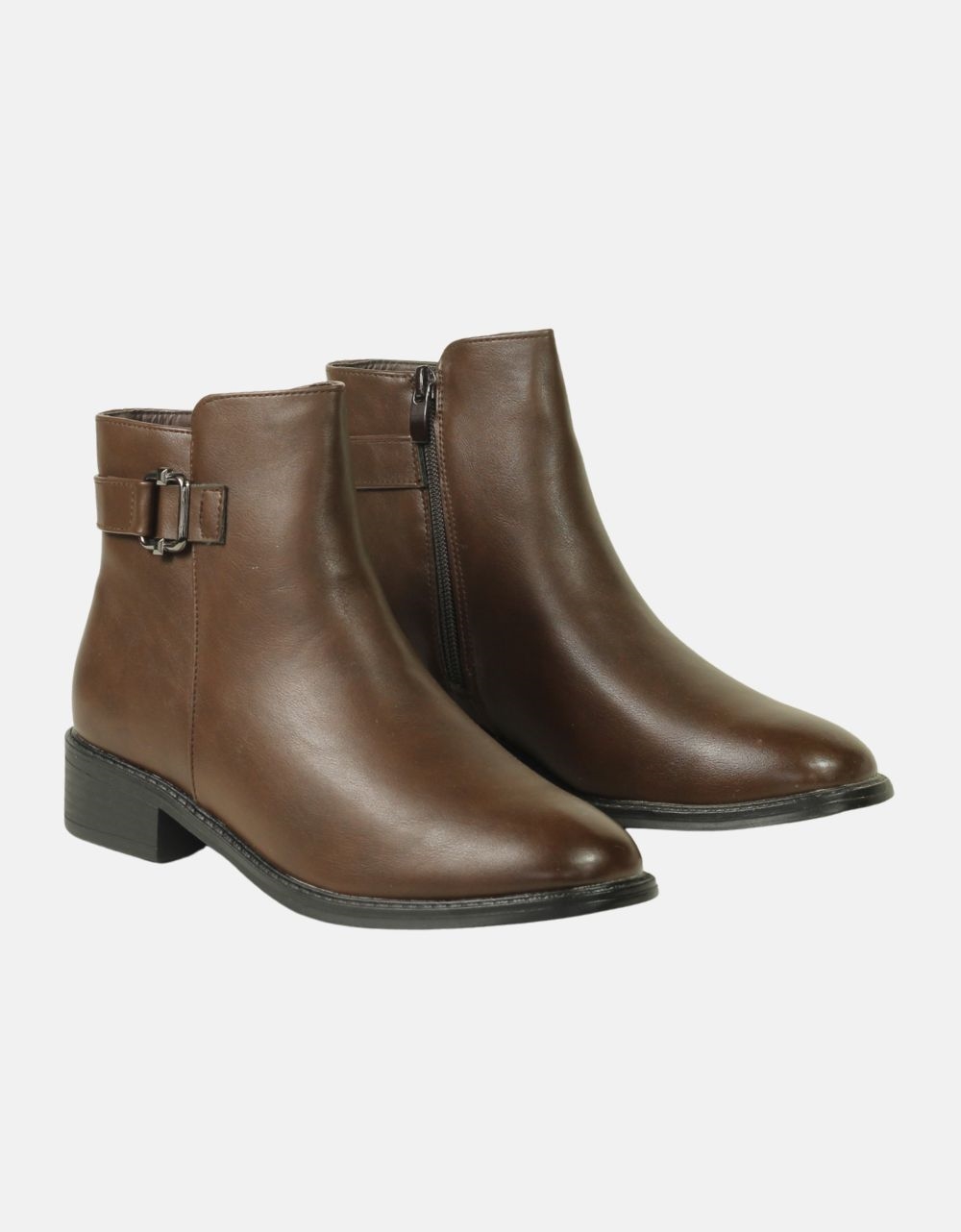 Γυναικεία μποτάκια flat με διακοσμητική αγκράφα Καφέ