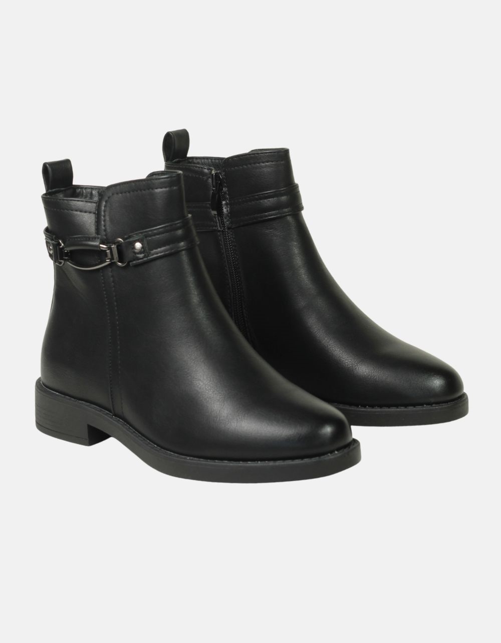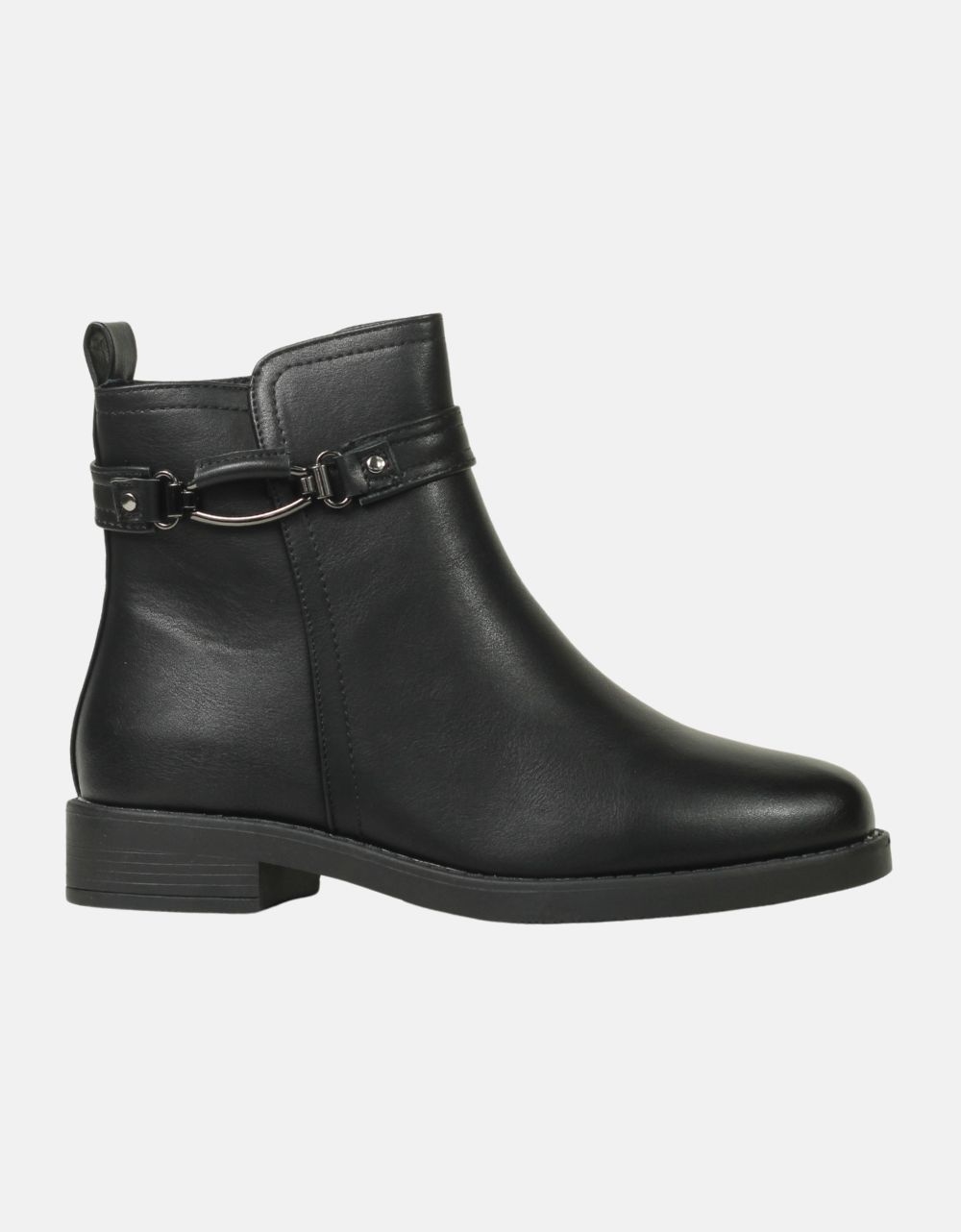 Γυναικεία μποτάκια flat με διακριτική αγκράφα Μαύρο