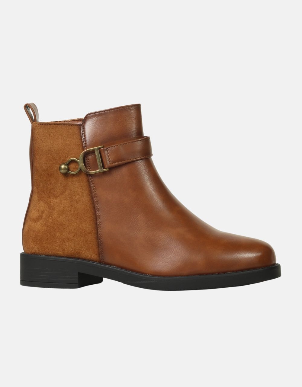 Γυναικεία μποτάκια flat με συνδιασμό υλικών Ταμπά
