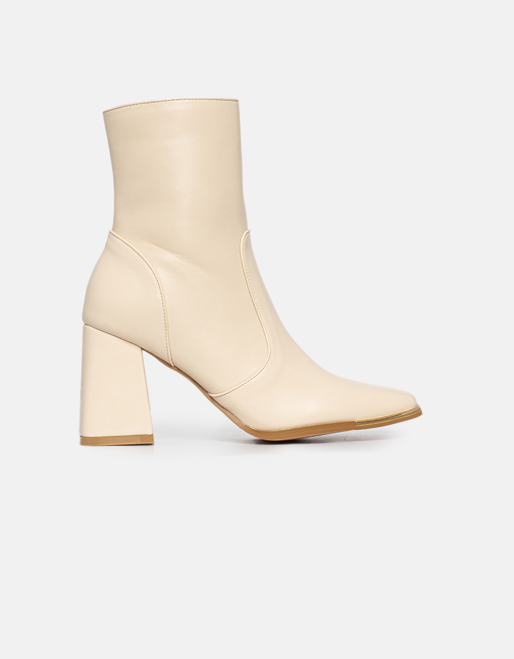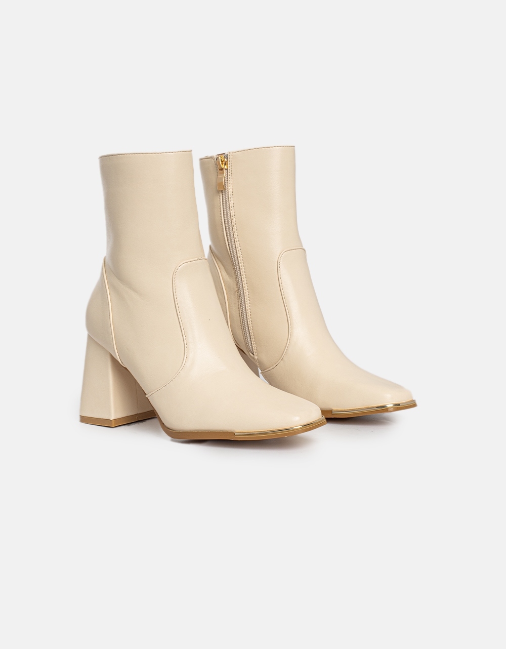 Γυναικεία μποτάκια με μεταλλική λεπτομέρεια Μπεζ