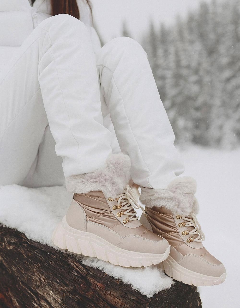 Γυναικεία δίσολα μποτάκια με συνδιασμό υλικών Μπεζ