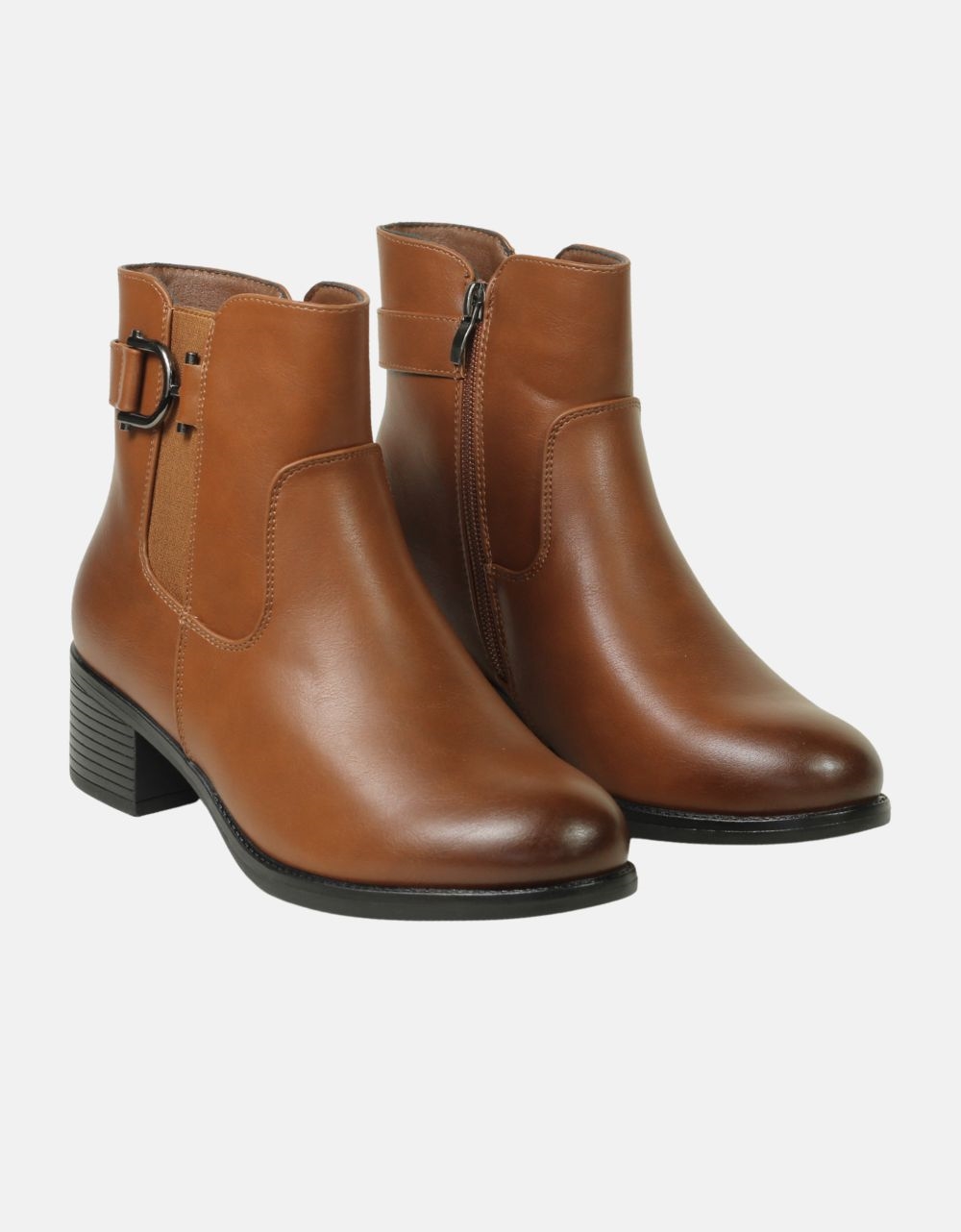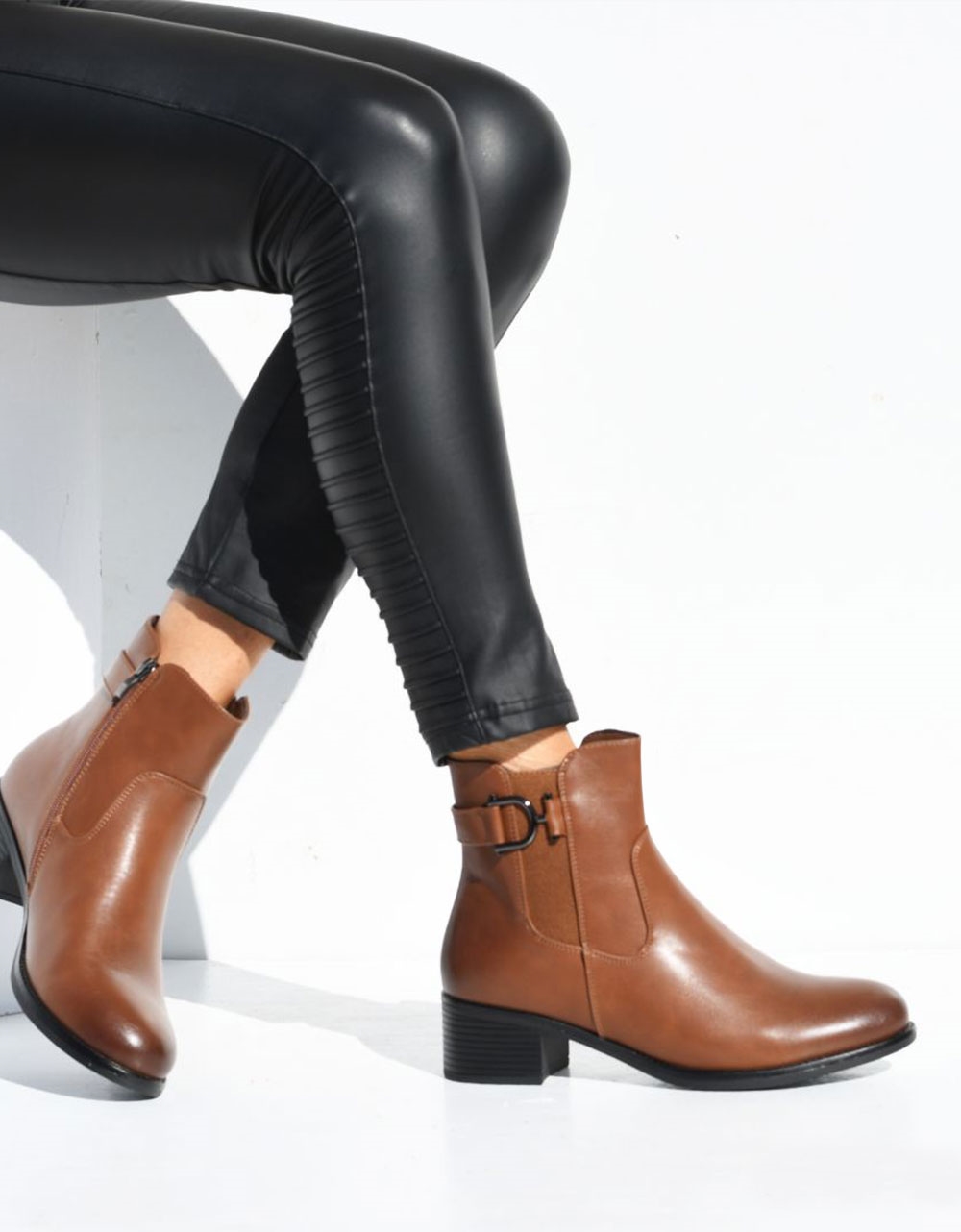Γυναικεία μποτάκια με τετράγωνο χαμηλό τακούνι. Διαθέτουν ελαστική και αντιολισθητική σόλα για άνετο βάδισμα καθόλη τη διάρκεια της ημέρας.