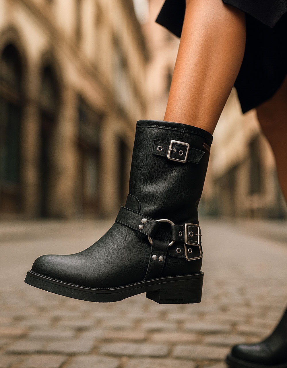 Γυναικεία μποτάκια με τοκάδες και χαμηλό τακούνι Μαύρο