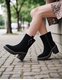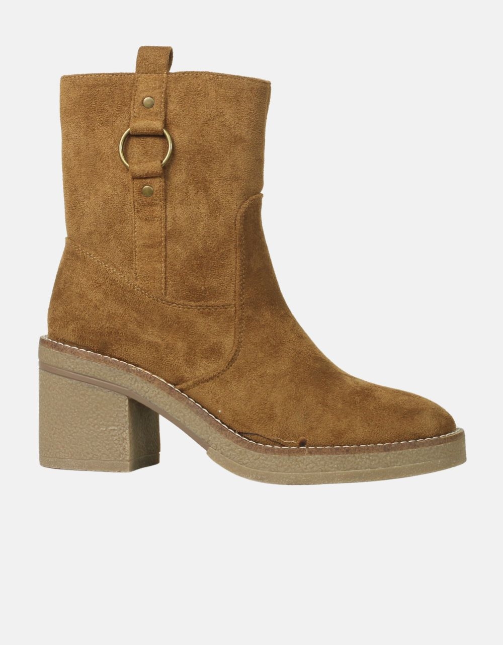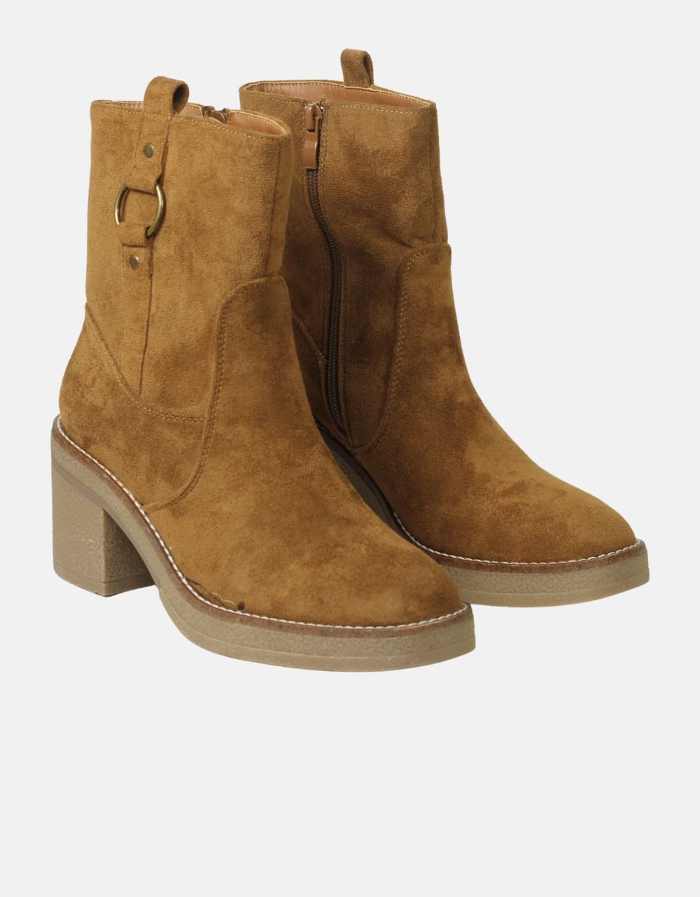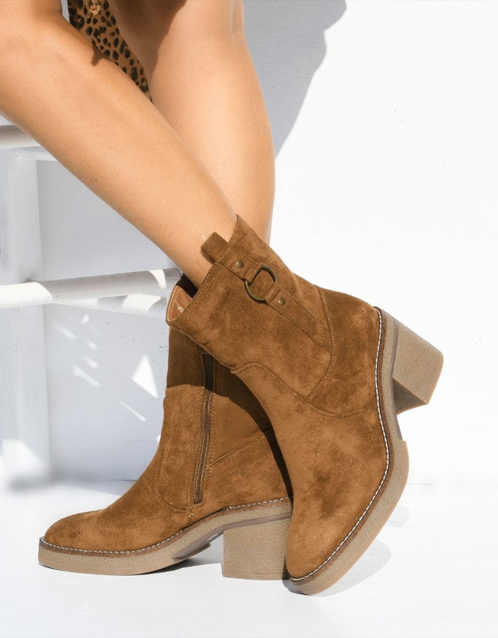 Γυναικεία μποτάκια suede με διακοσμητικό κρίκο. Διαθέτουν ελαστική, αντιολισθητική σόλα και σταθερό τετράγωνο τακούνι για άνετο βάδισμα.