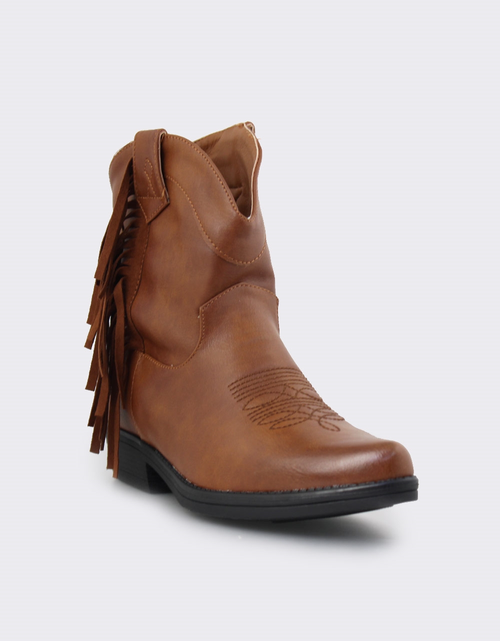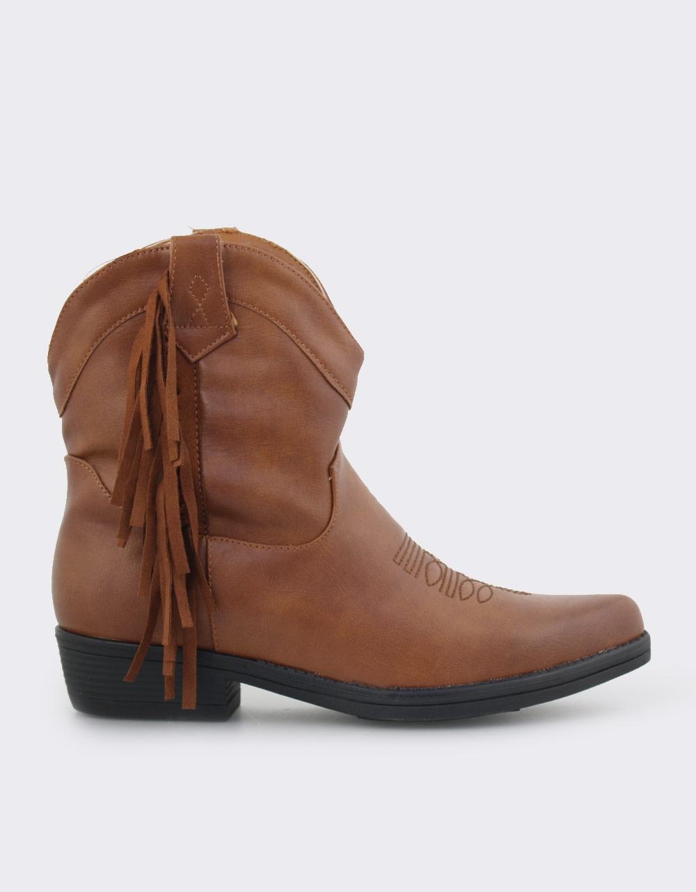 Μονόχρωμα cowboy μποτάκια χαμηλά με κρόσσια Ταμπά