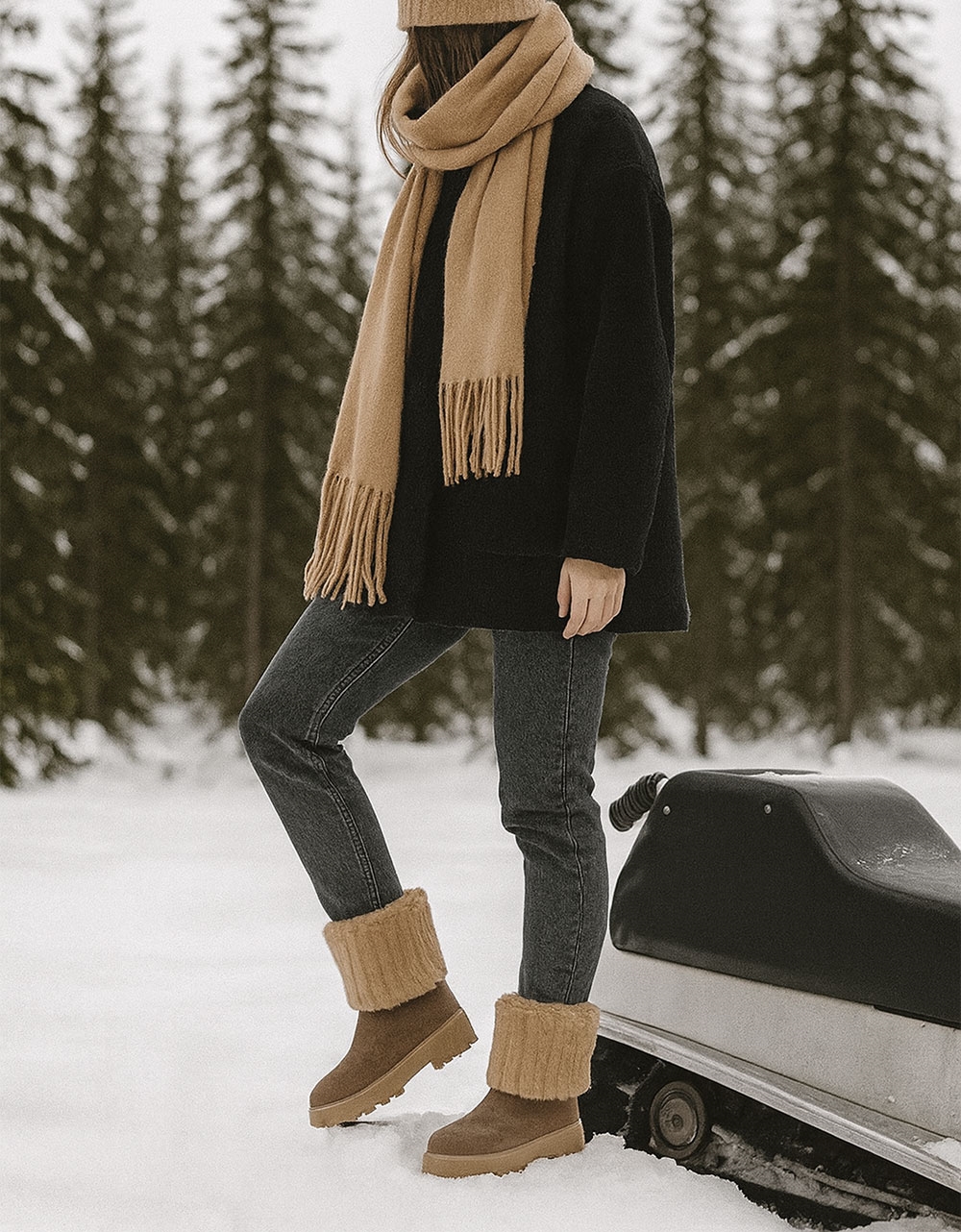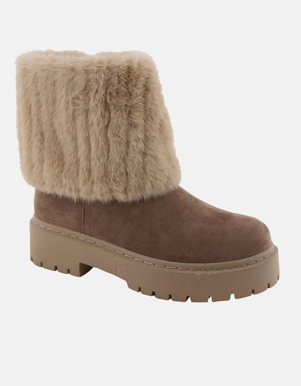 Μονόχρωμα suede μποτάκια με τρακτερωτή σόλα. Διαθέτουν εσωτερικά επένδυση από συνθετικό γουνάκι και διπλή αντιολισθητική σόλα για άνετο βάδισμα.