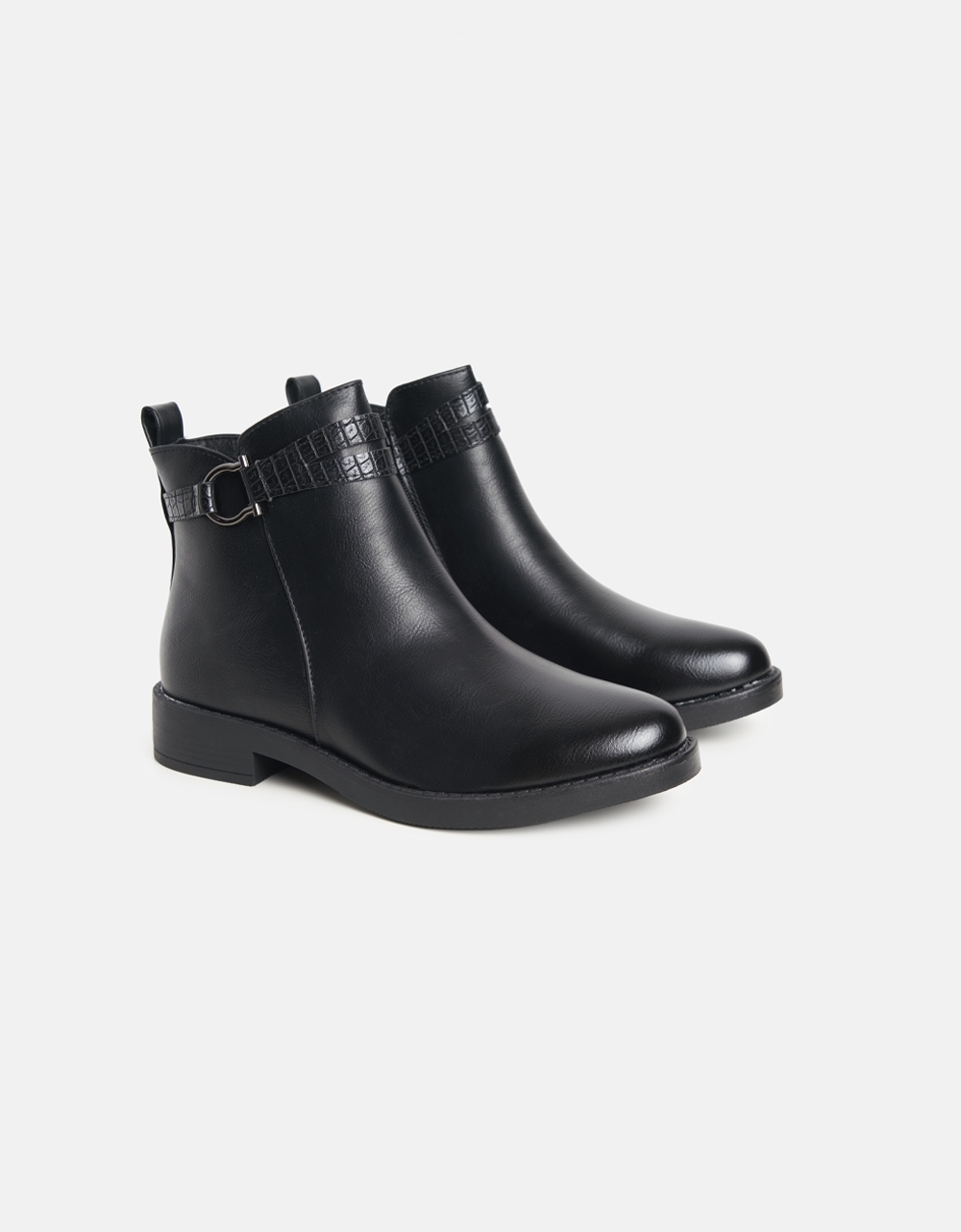 Μποτάκια αστραγάλου με κροκό λεπτομέρεια Μαύρο
