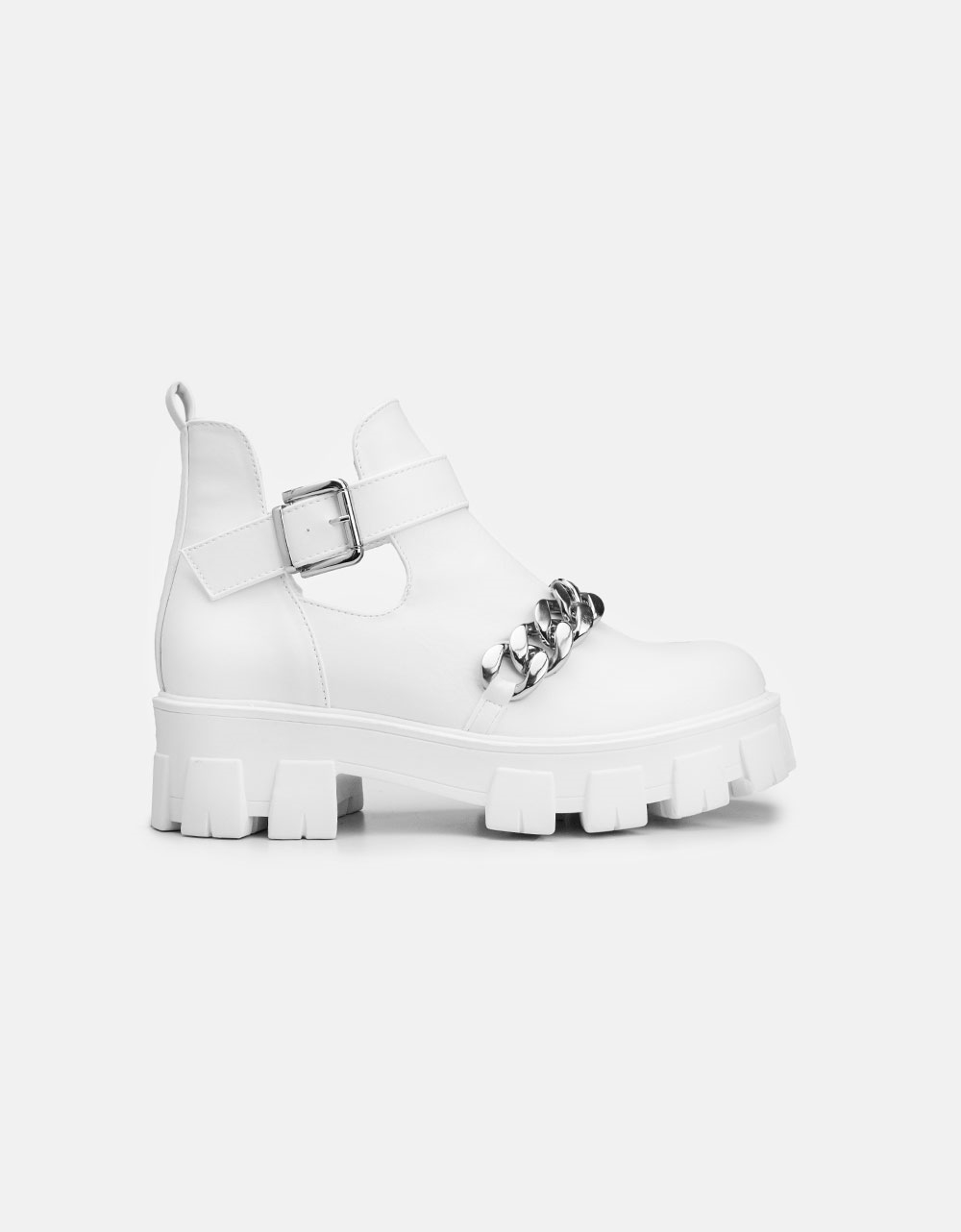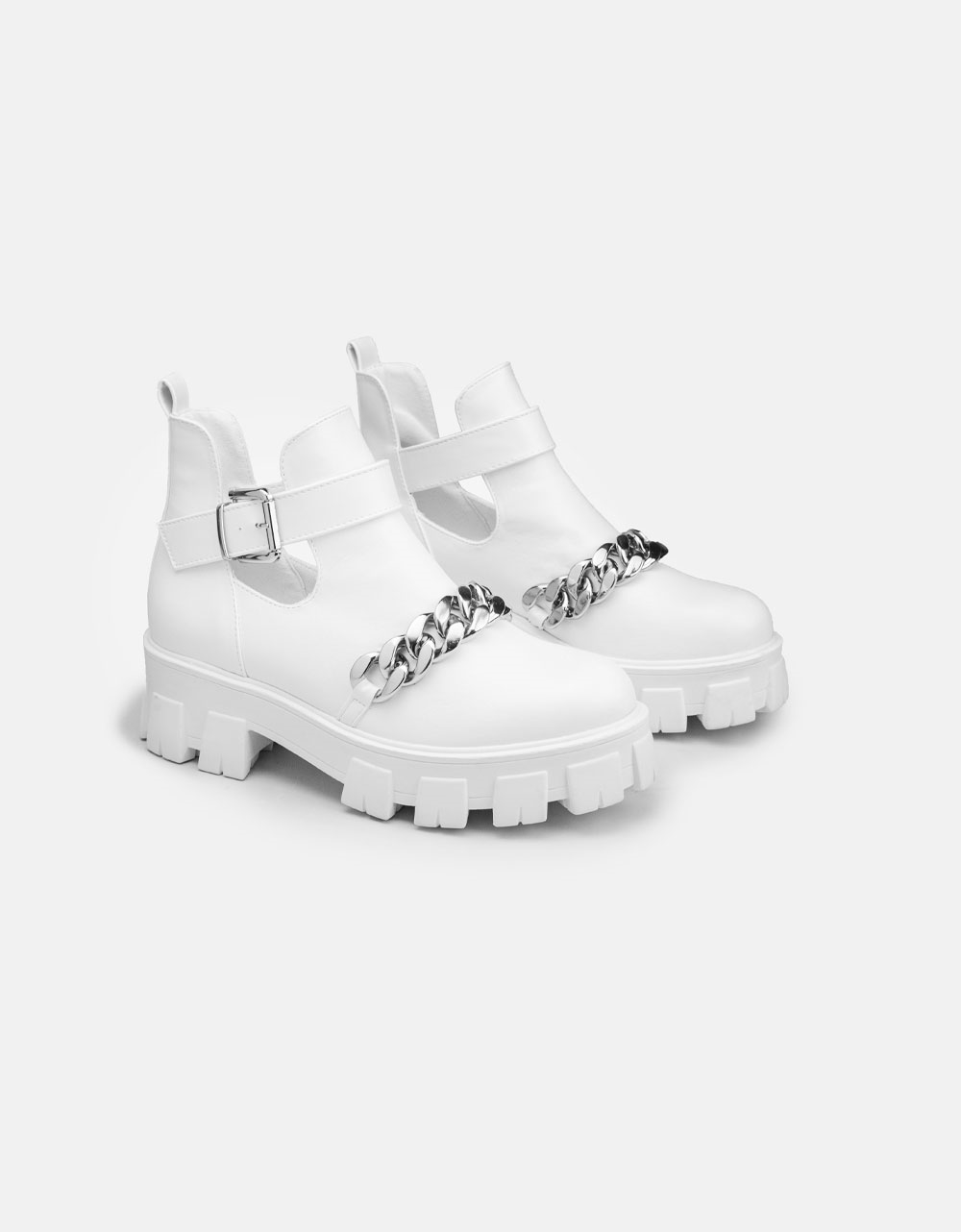 Μποτάκια με ανοίγματα και διακοσμητική αλυσίδα Λευκό