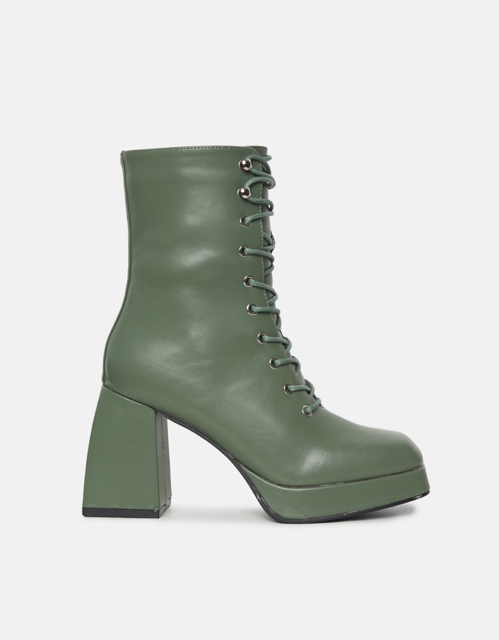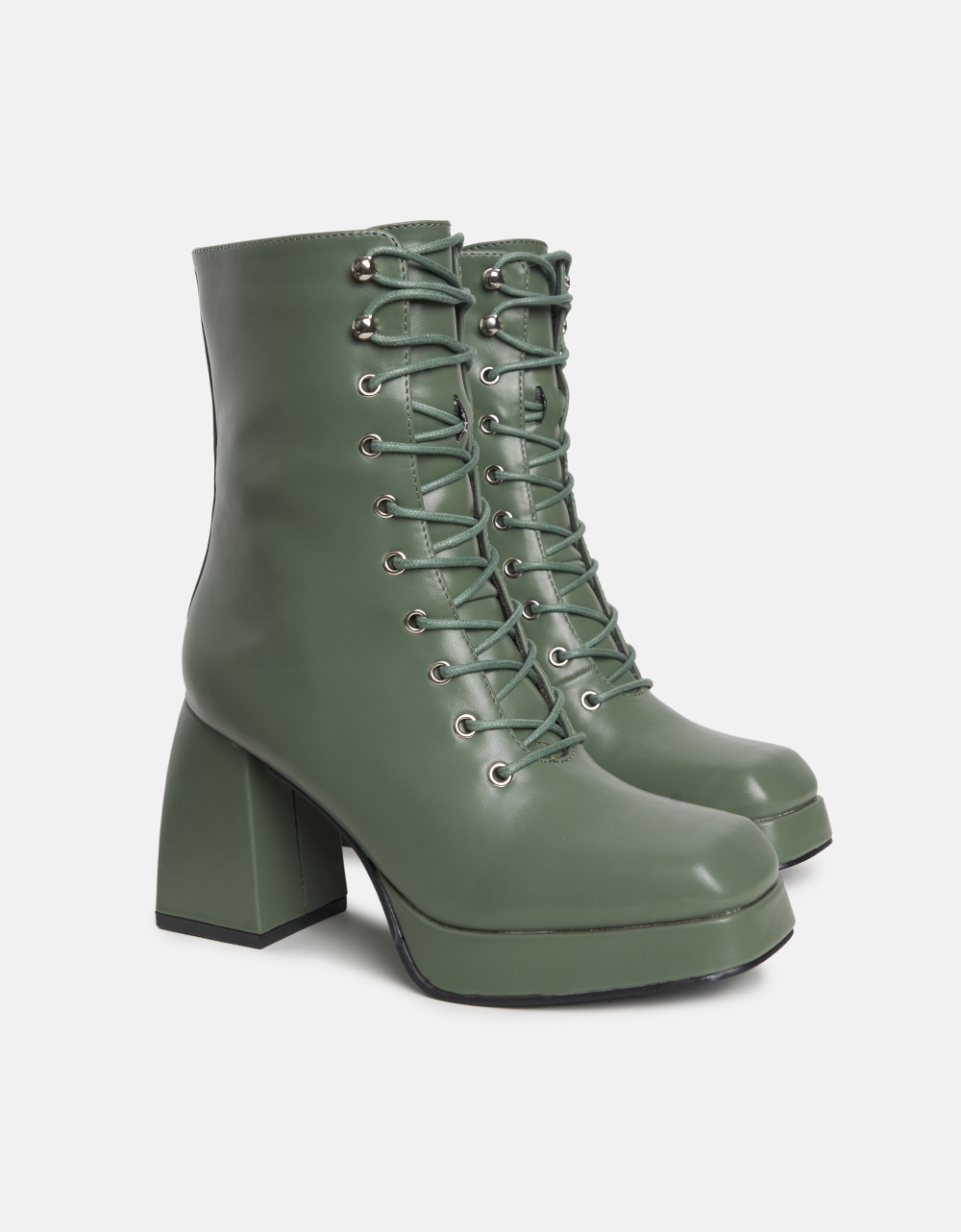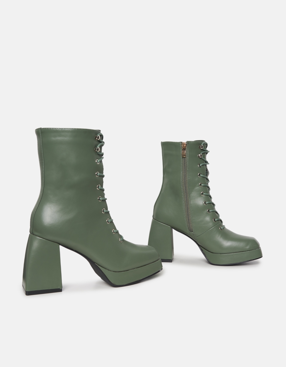 Μποτάκια με τετράγωνο τακούνι και κορδόνια Πράσινο
