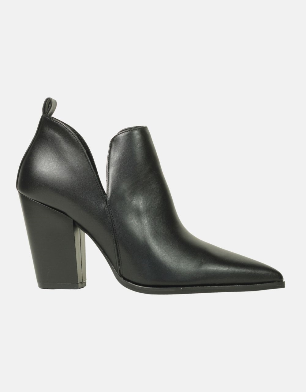 γυναικείά μυτερά μποτάκια, Ελληνικής κατασκευής με αφρώδη δερμάτινο πάτο και ανοίγματα στο πλάι. Διαθέτουν χοντρό τακούνι και είναι κατάλληλα για επίσημες και εντυπωσιακές εμφανίσεις.