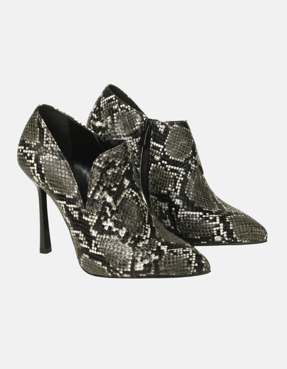 Μυτερά μποτάκια Ελληνικής κατασκευής με φερμουάρ. Διαθέτουν σχέδιο με άνοιγμα καθώς και δερμάτινο πάτο με μυτερό τακούνι και αντιολισθητική σόλα.