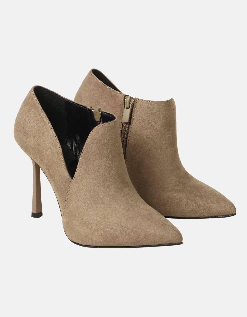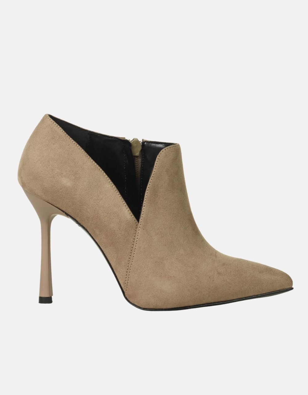 Μυτερά μποτάκια Ελληνικής κατασκευής με φερμουάρ. Διαθέτουν σχέδιο με άνοιγμα καθώς και δερμάτινο πάτο με μυτερό τακούνι και αντιολισθητική σόλα.