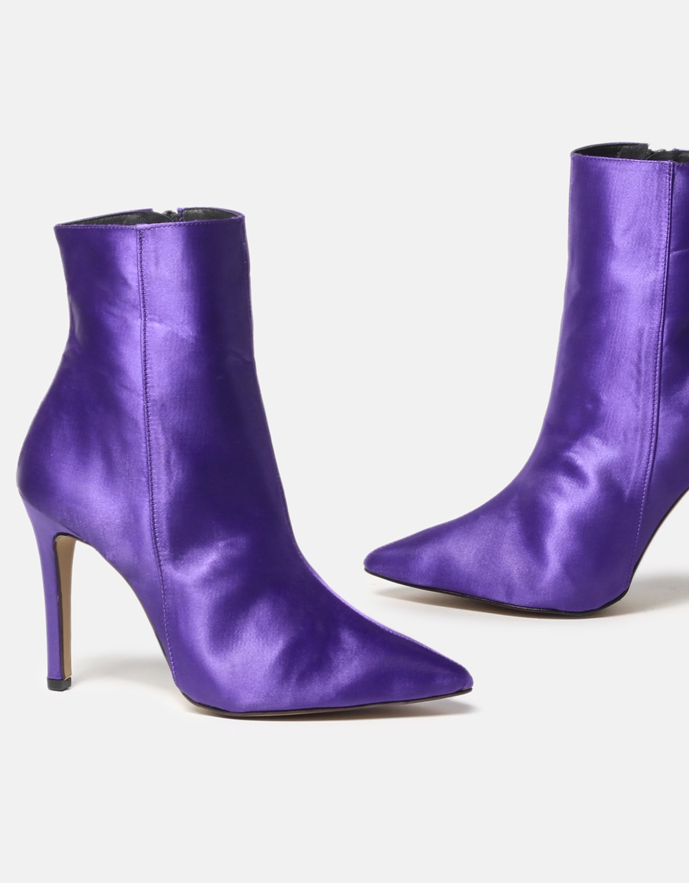 Σατέν μυτερά μποτάκια Ελληνικής Κατασκευής με λεπτό τακούνι Μωβ
