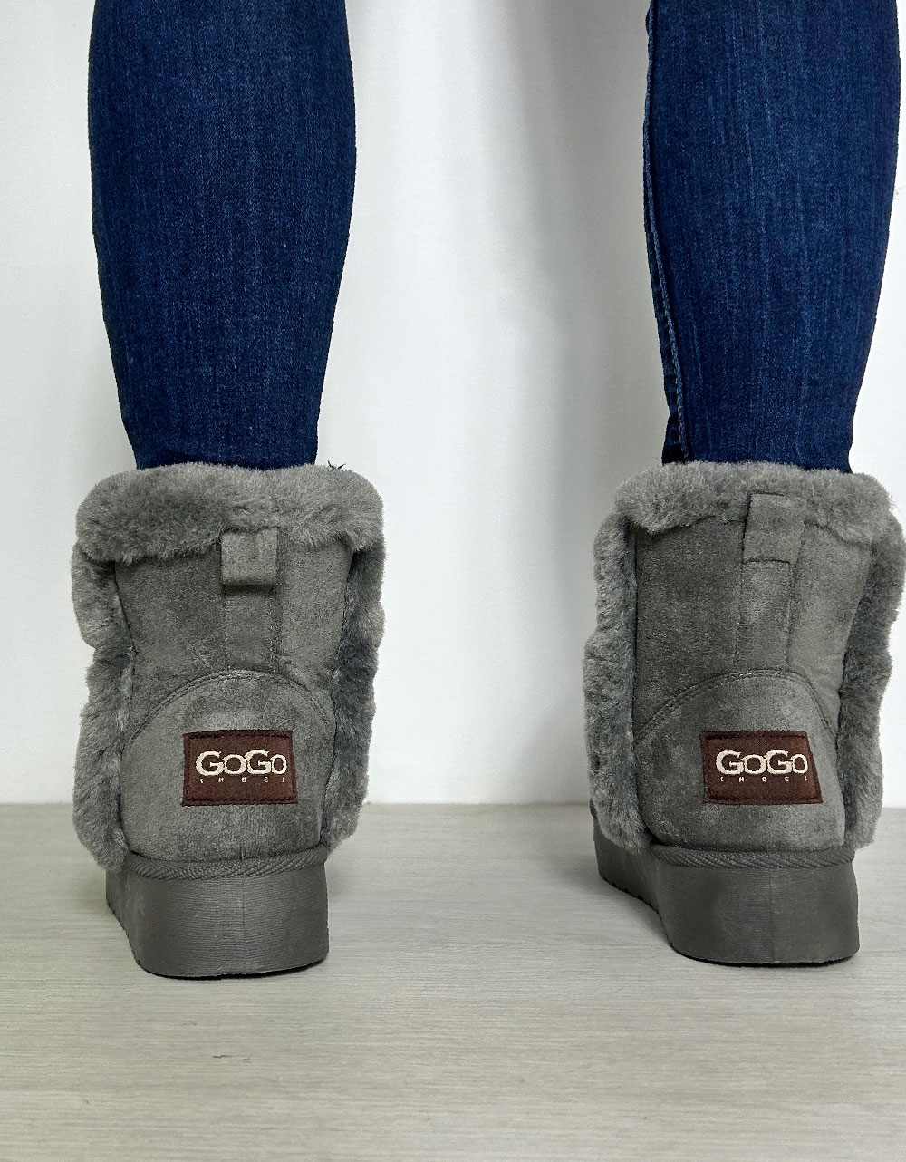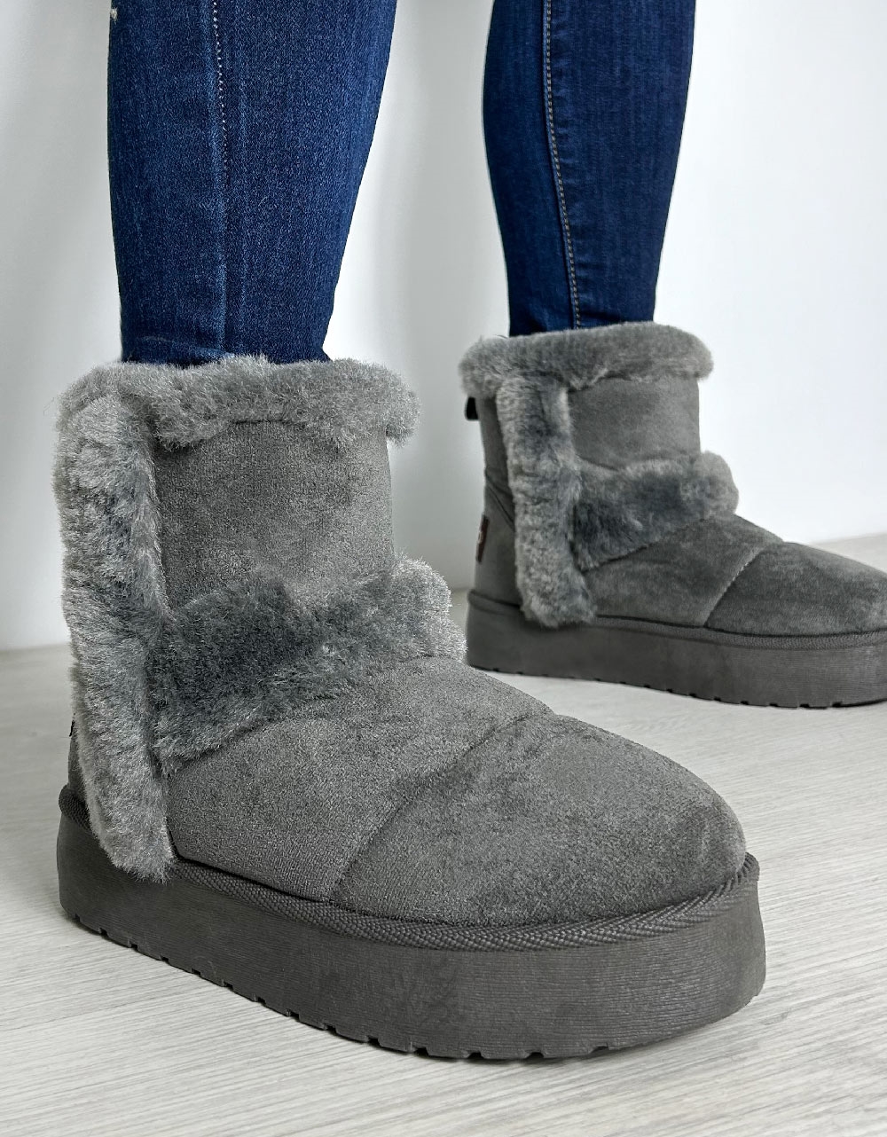 Suede δίσολα μποτάκια με οικολογική γούνα Γκρι