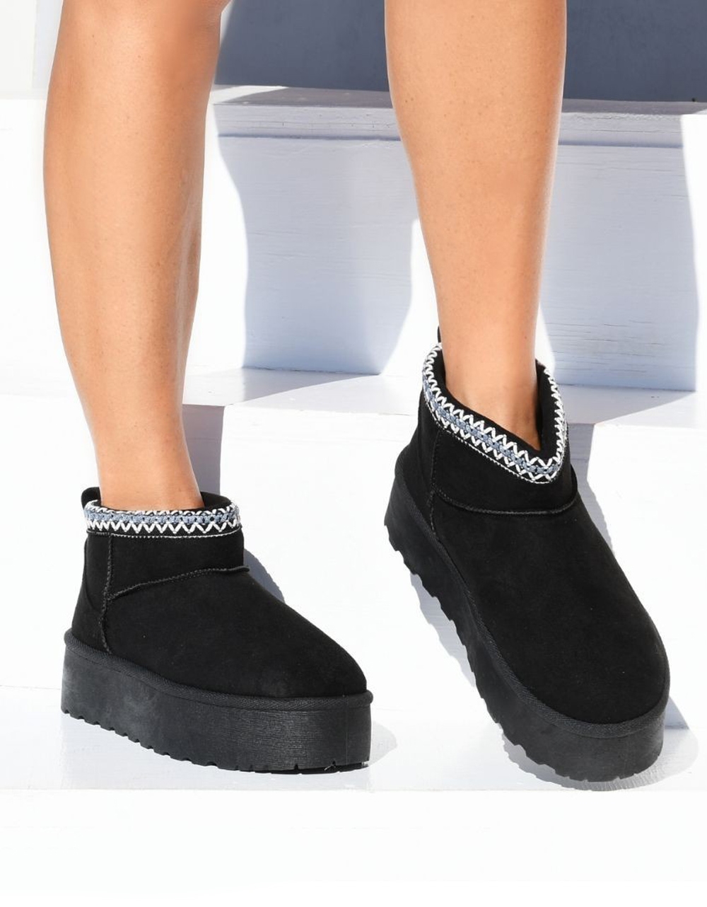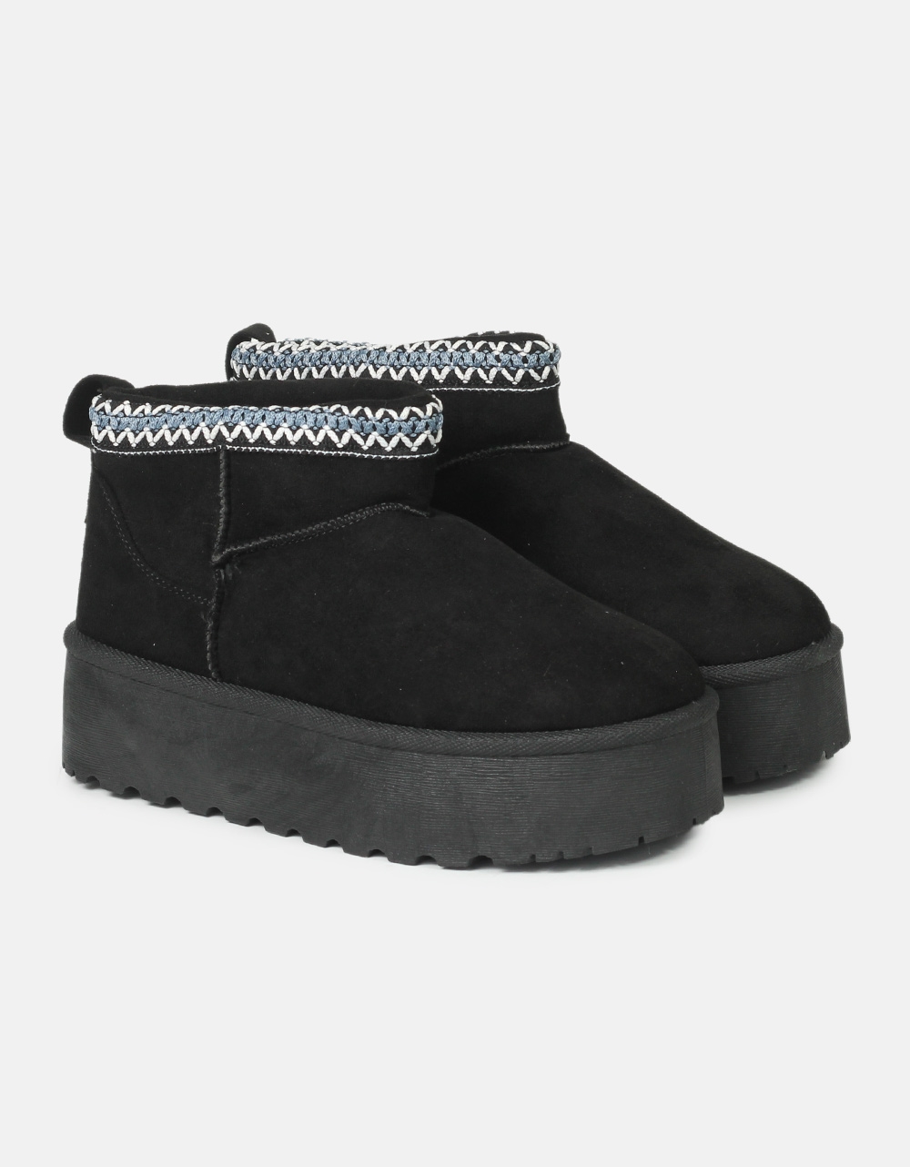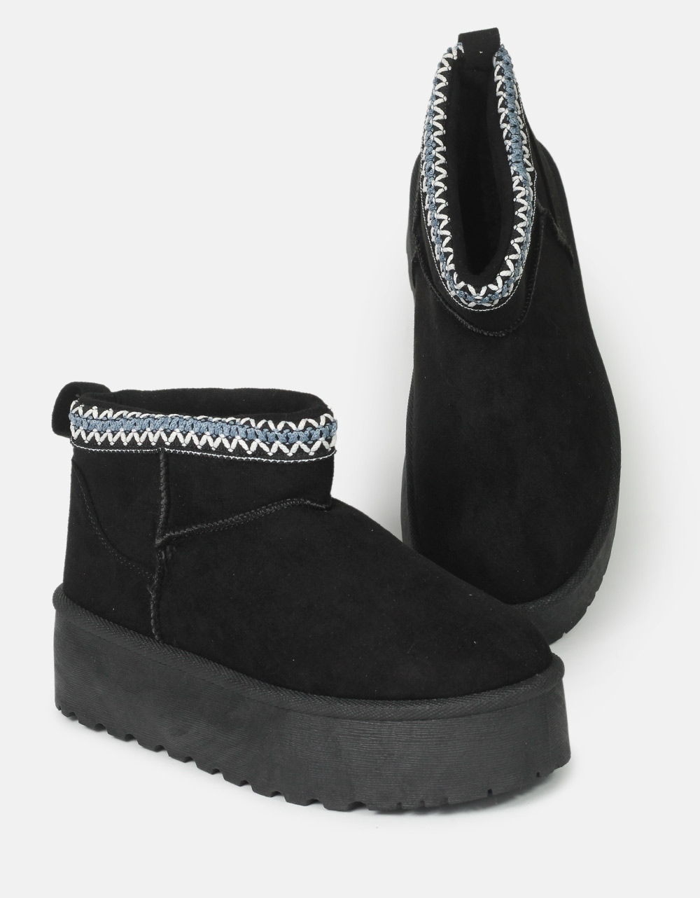 Suede μποτάκια με διπλό πάτο και γούνινη επένδυση εσωτερικά Μαύρο