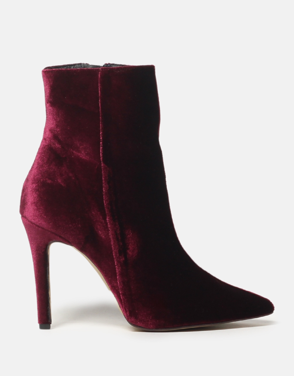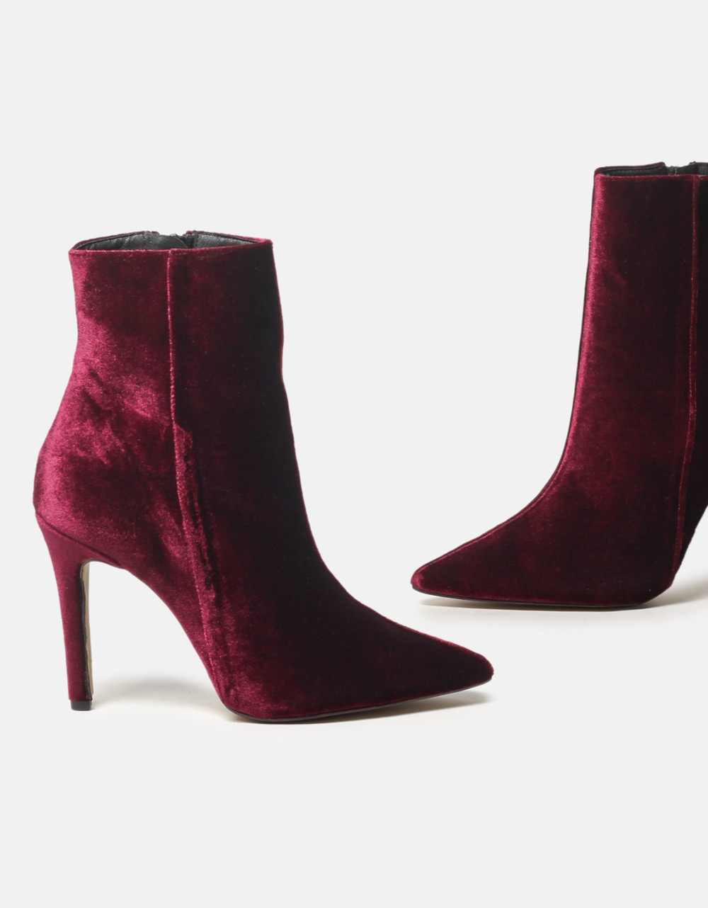 Velvet μποτάκια Ελληνικής κατασκευής με λεπτό τακούνι Μπορντώ