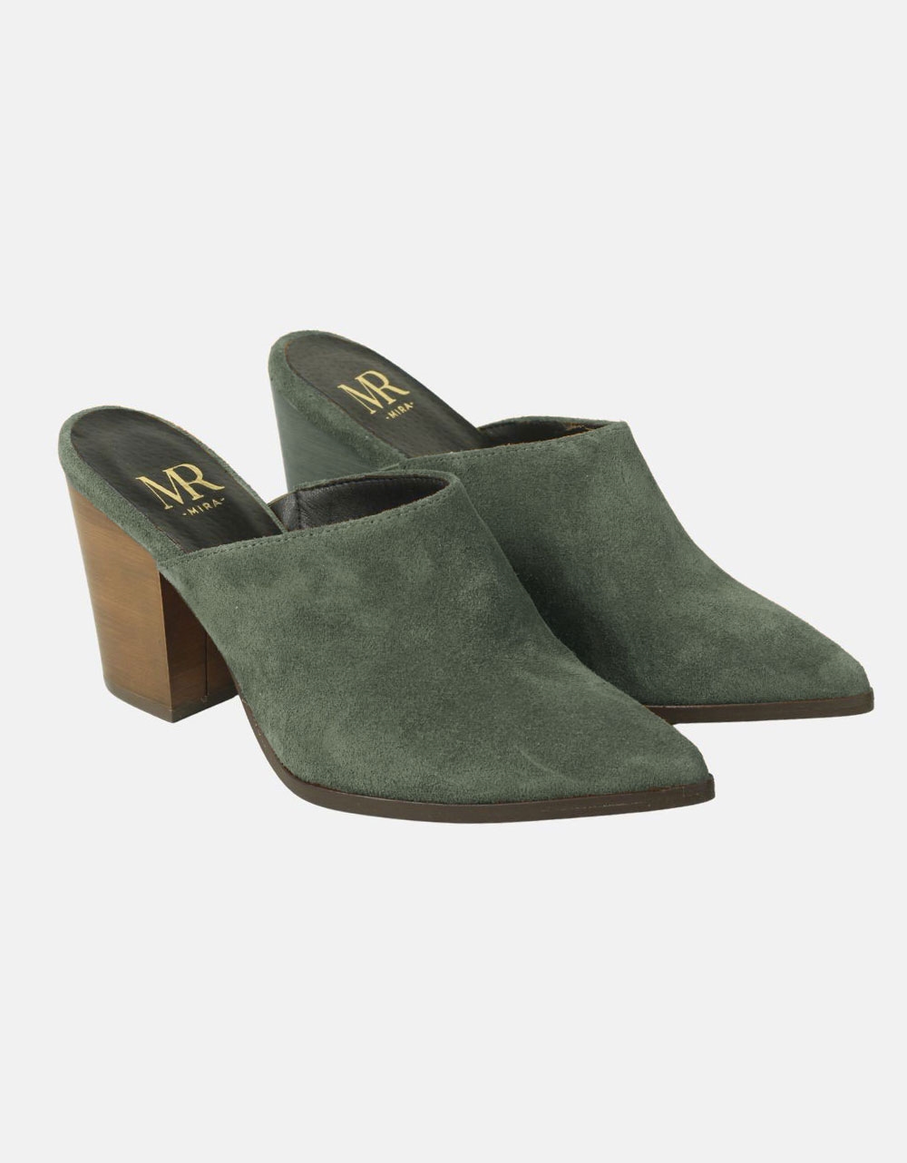 Δερμάτινα cowboy mules Ελληνικής κατασκευής σε μυτερή γραμμή Λαδί