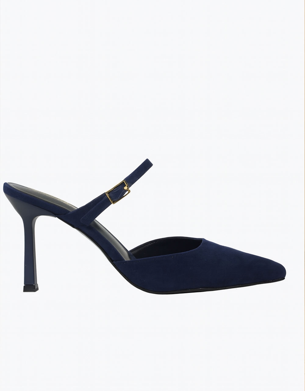 Δερμάτινα suede mules Ελληνικής κατασκευής σε μυτερή γραμμή. Διαθέτουν κομψό λουράκι και λεπτό ψηλό τακούνι και αντιολισθητική - ελαστική σόλα για άνετο βάδισμα.