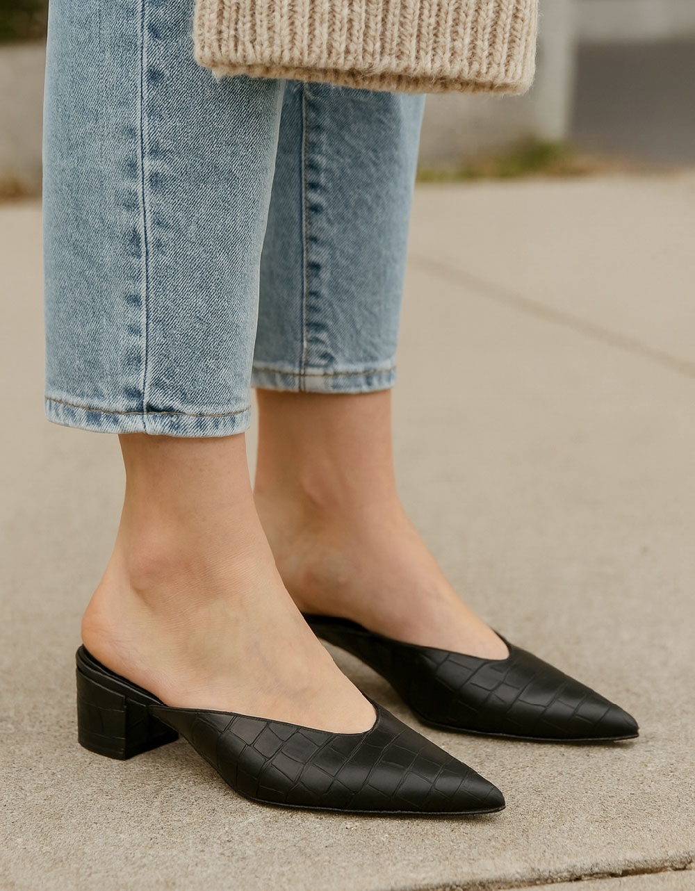 Δερμάτινα mules Ελληνικής κατασκευής σε μυτερή γραμμή Μαύρο