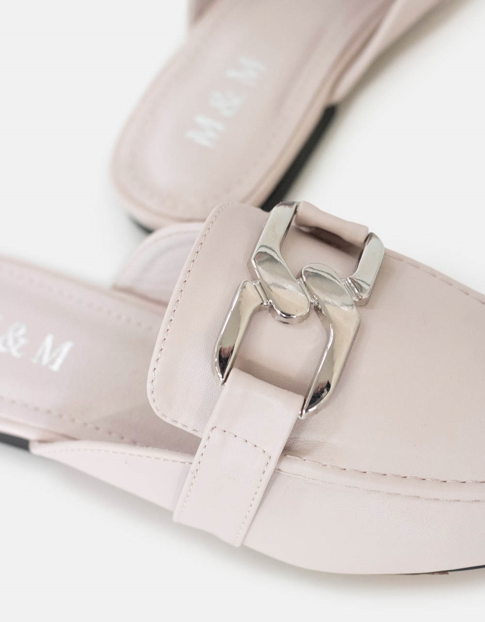 Flat μονόχρωμα mules με μεταλλική αγκράφα Μπεζ