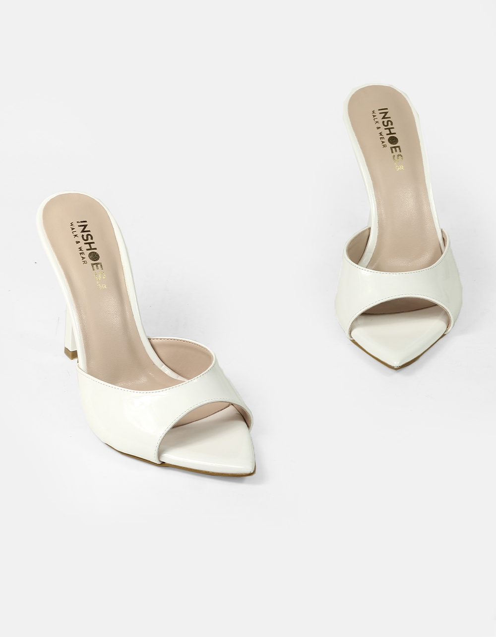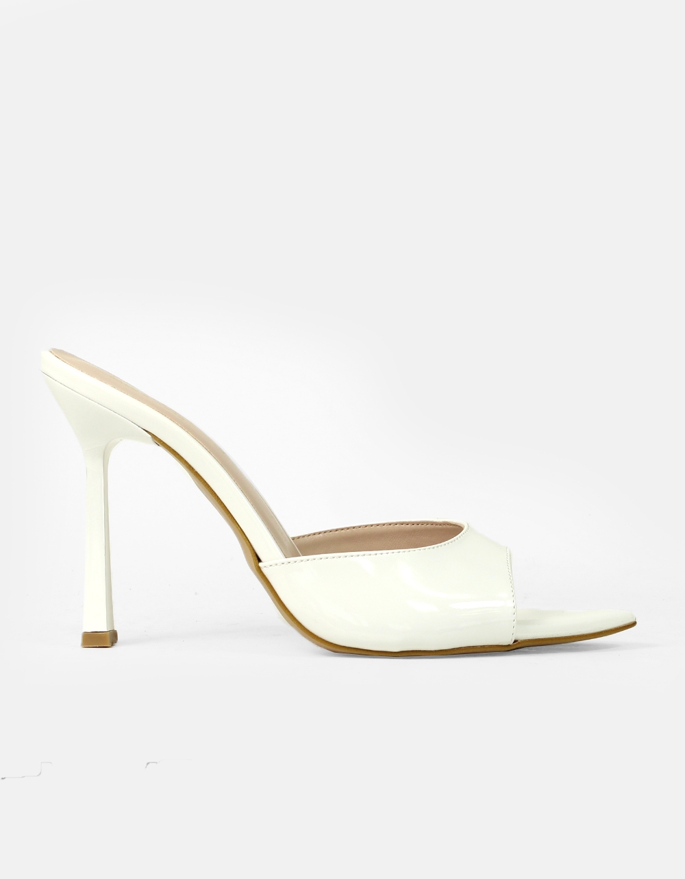 Λουστρίνι mules μυτερά Ελληνικής κατασκευής Λευκό