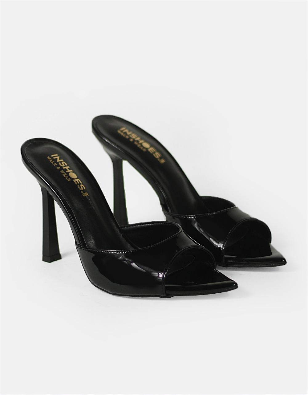 Λουστρίνι mules μυτερά Ελληνικής κατασκευής Μαύρο