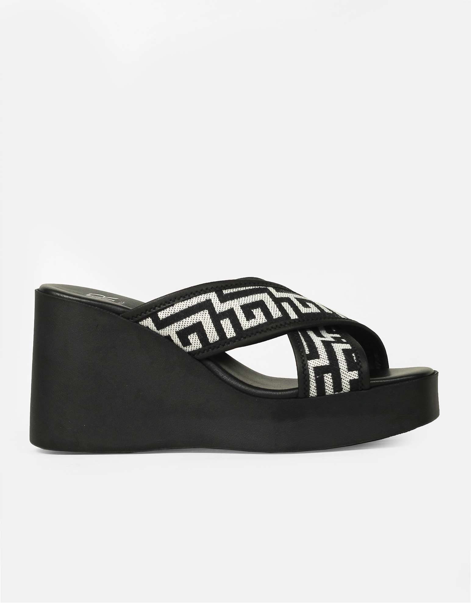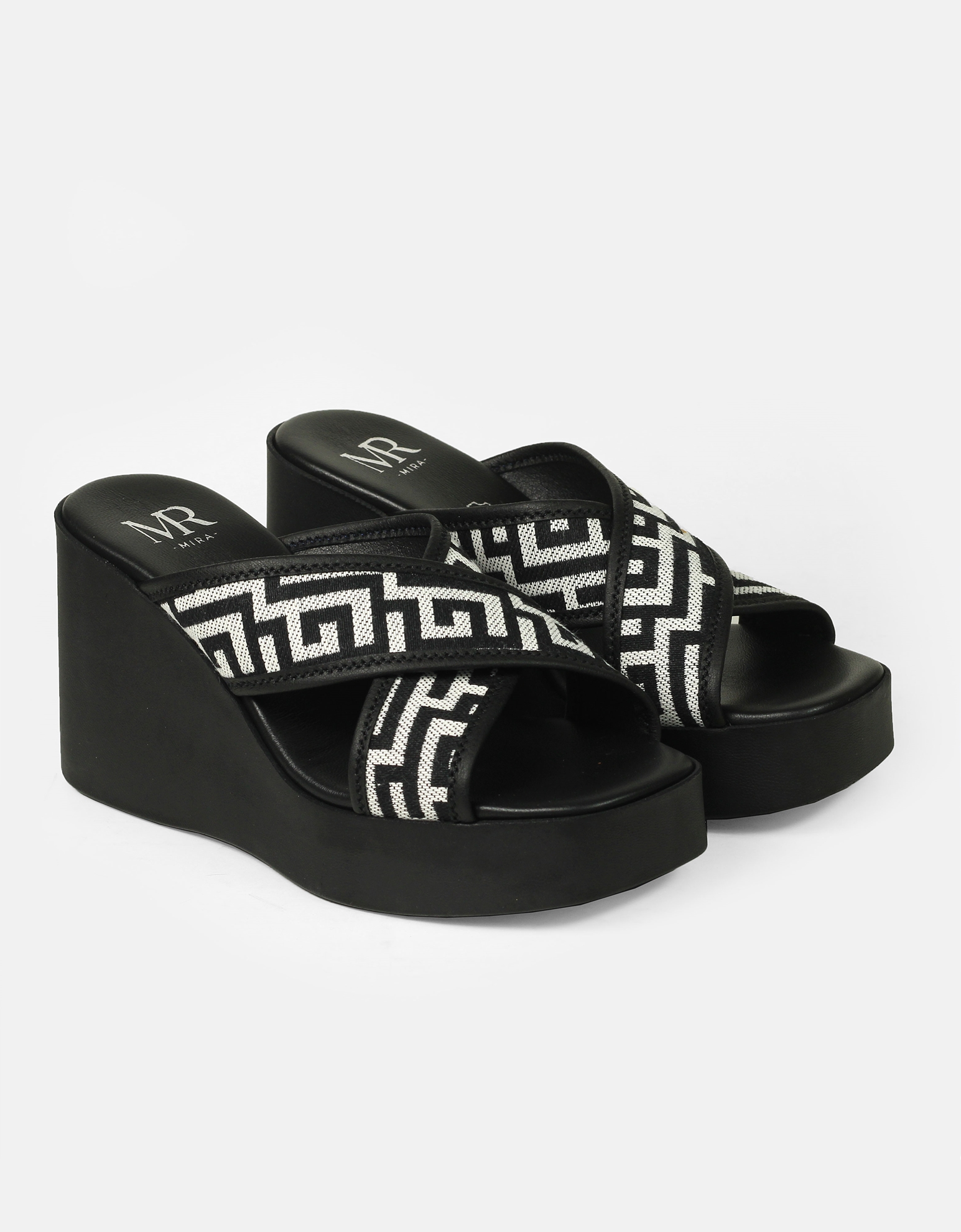 Mules δερμάτινα Ελληνικής κατασκευής με χιαστί μοτίβο μαιάνδρου Μαύρο