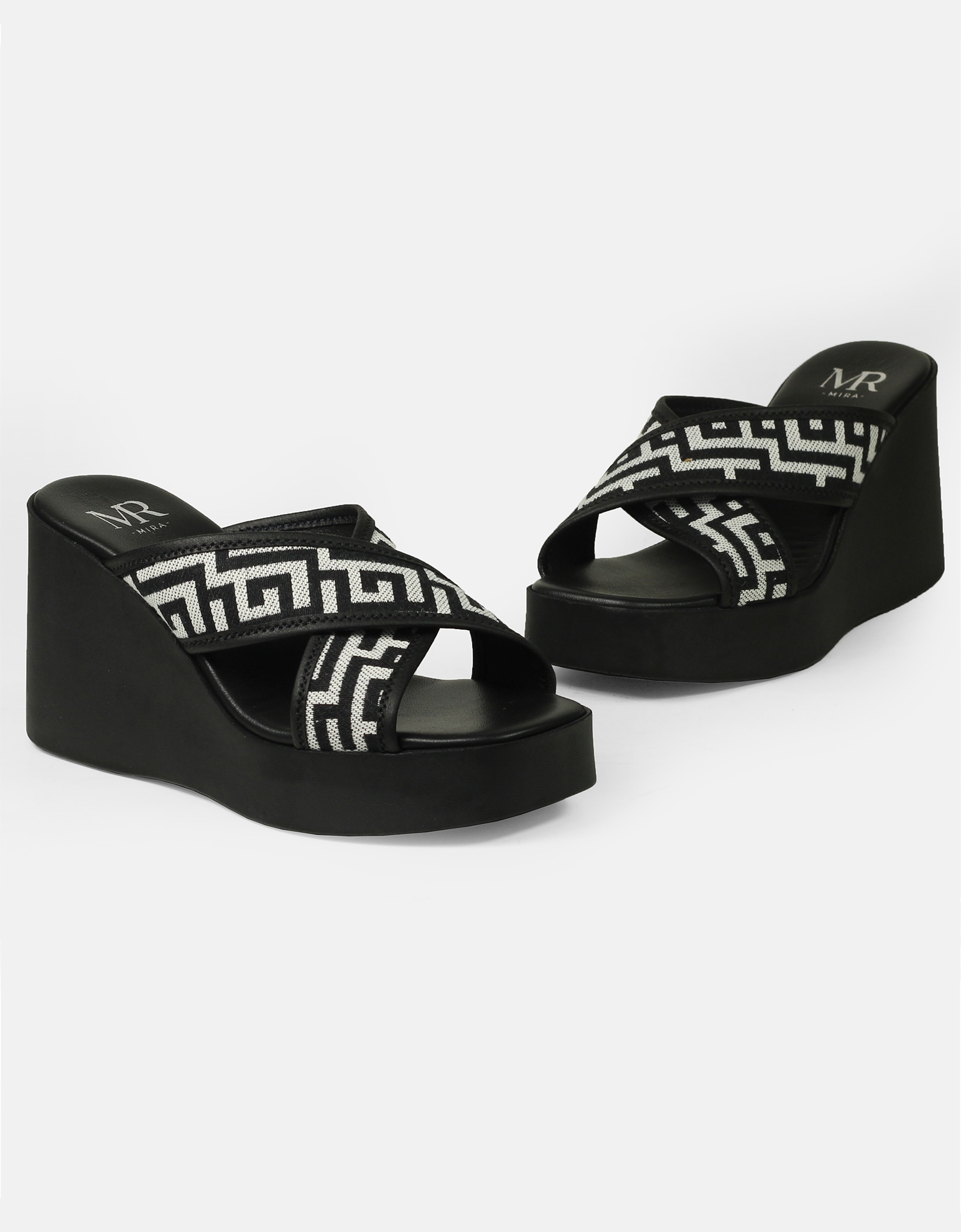 Mules δερμάτινα Ελληνικής κατασκευής με χιαστί μοτίβο μαιάνδρου. Διαθέτουν τετράγωνο σταθερό τακούνι και αφρώδη πάτο για άνετο βάδισμα.