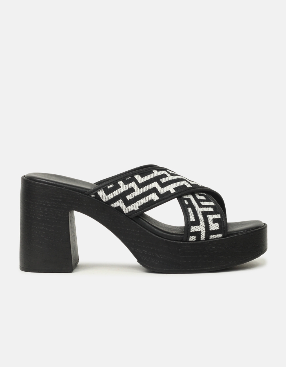 Μules, Ελληνικής κατασκευής με μοτίβο μαιάνδρου και χιαστί σχέδιο. Διαθέτουν τετράγωνο σταθερό τακούνι και αφρώδη πάτο από γνήσιο δέρμα για άνετο βάδισμα.