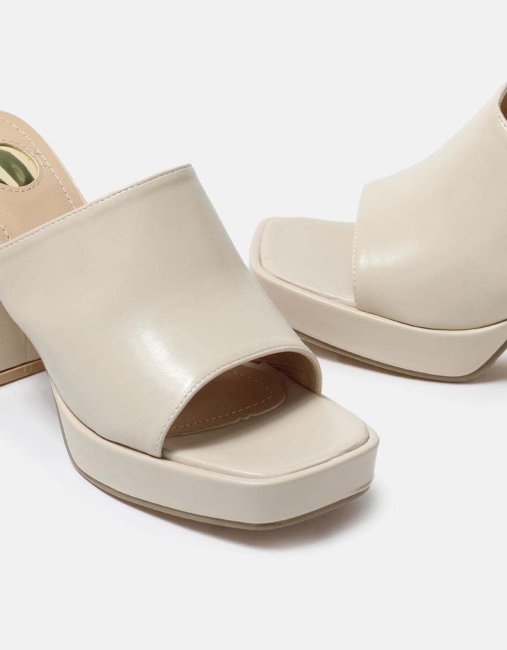 Mules με φαρδιά φάσα και τετράγωνο τακούνι Μπεζ