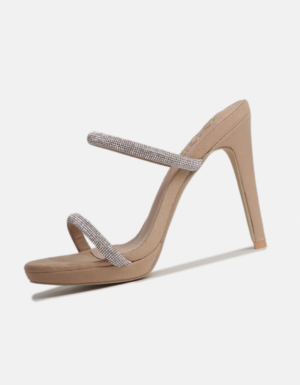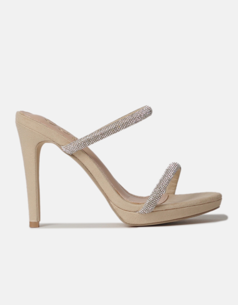 Ψηλοτάκουνα mules. Διαθέτουν διπλά λουράκια διακοσμημένα με strass και λεπτό τακούνι που τα καθιστούν ιδανικά για εντυπωσιακές εμφανίσεις.