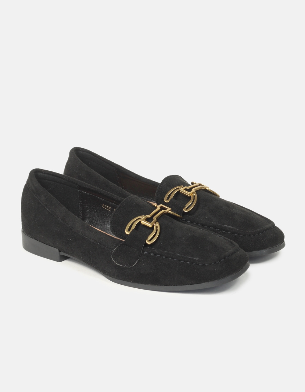 Flat μονόχρωμα loafers με μεταλλική αγκράφα Μαύρο