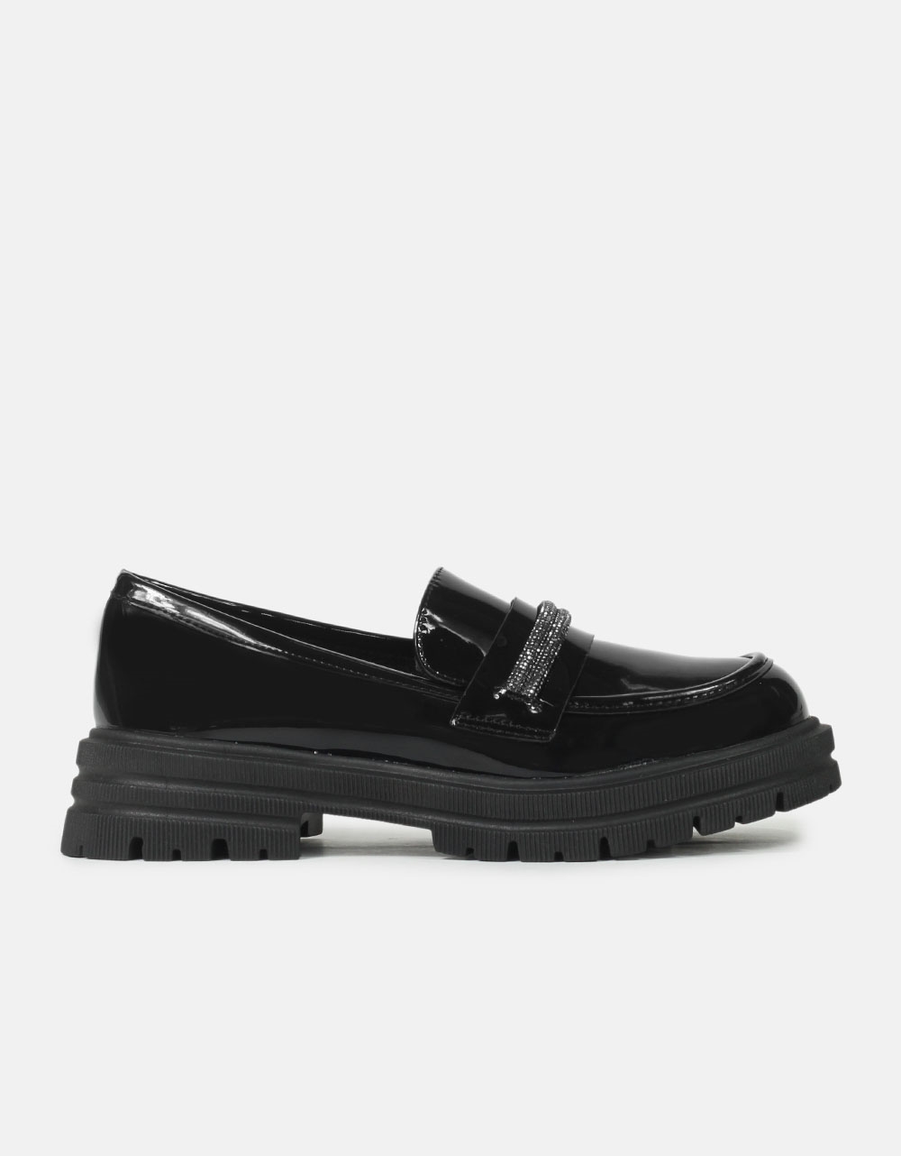 Μονόχρωμα λουστρίνι loafers με σχέδιο από strass Διαθέτουν τρακτερωτή αντιολισθητική σόλα για άνετο βάδισμα καθόλη τη διάρκεια της ημέρας.