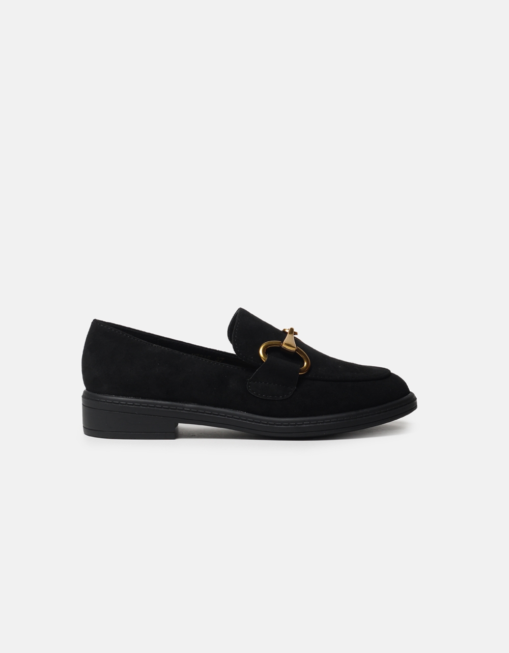 Suede μονόχρωμα loafers με μεταλλική αγκράφα Μαύρο