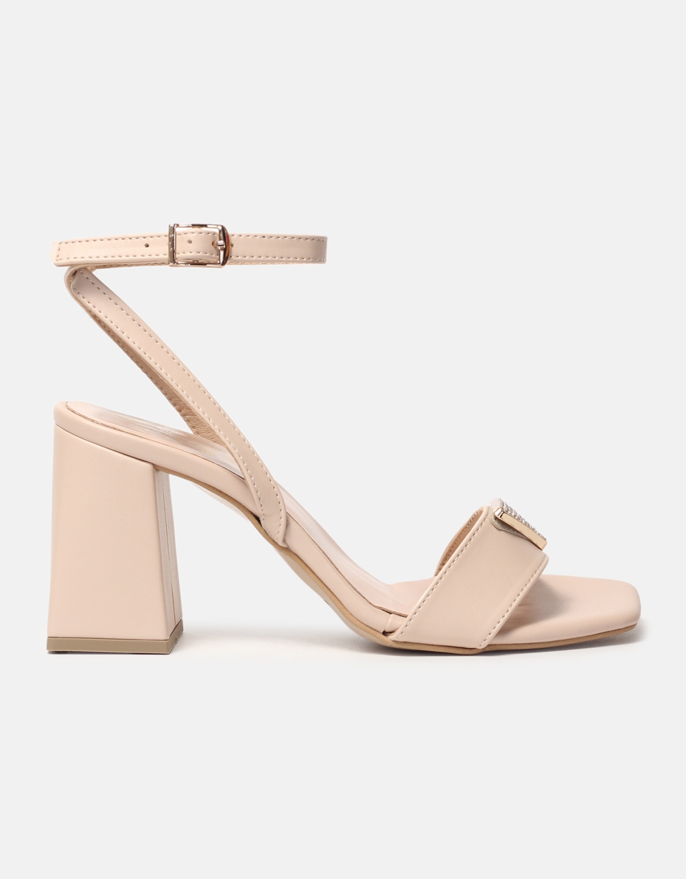 Δερμάτινα open heel πέδιλα Ελληνικής κατασκευής με μπαρέτα Nude