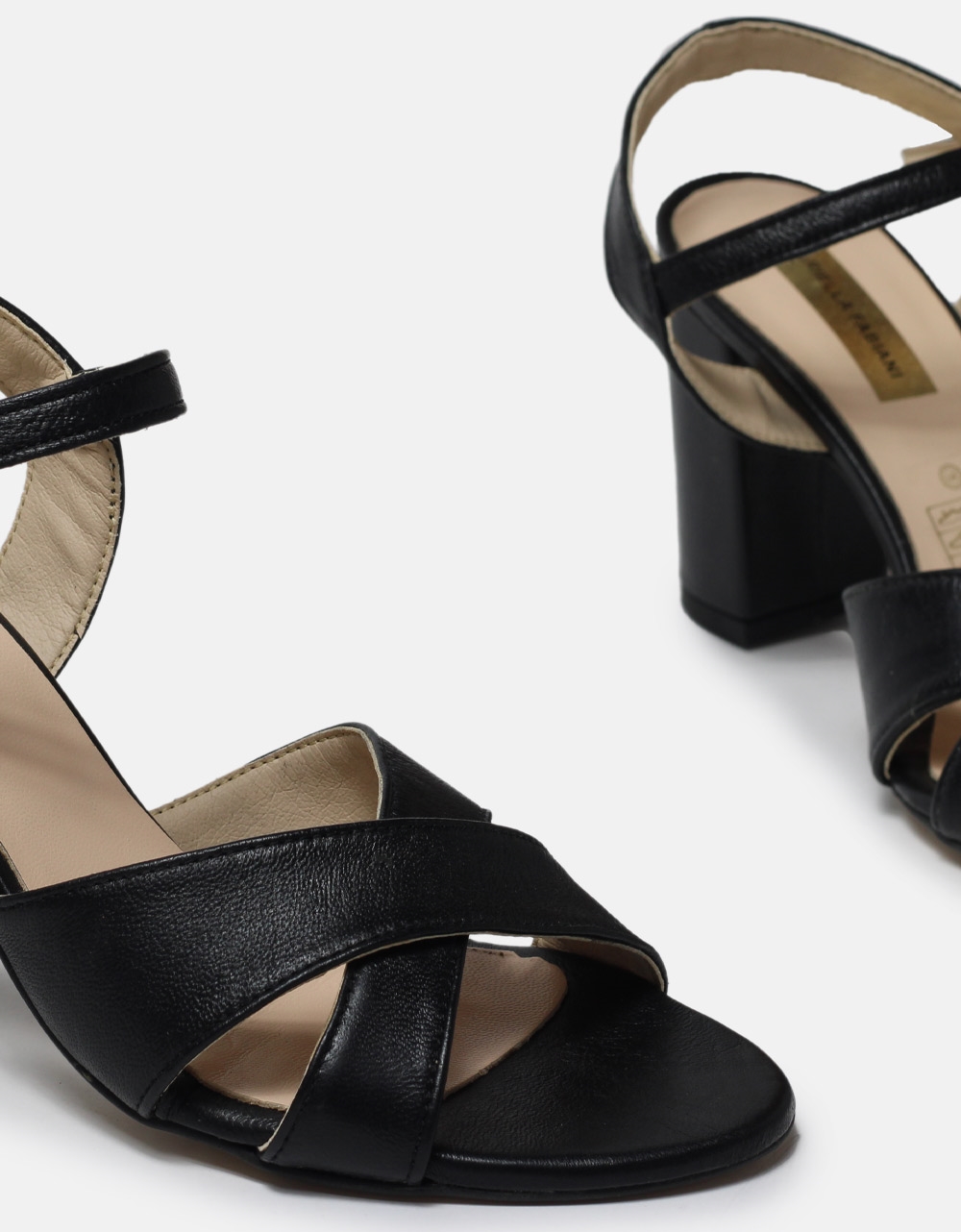 Δερμάτινα πέδιλα Ελληνικής κατασκευής από άριστης ποιότητας δέρμα εξωτερικά και εσωτερικά. Διαθέτουν τετράγωνο τακούνι, χιαστί σχέδιο στη φάσα και δένουν με μπαρέτα στο ύψος του αστραγάλου.